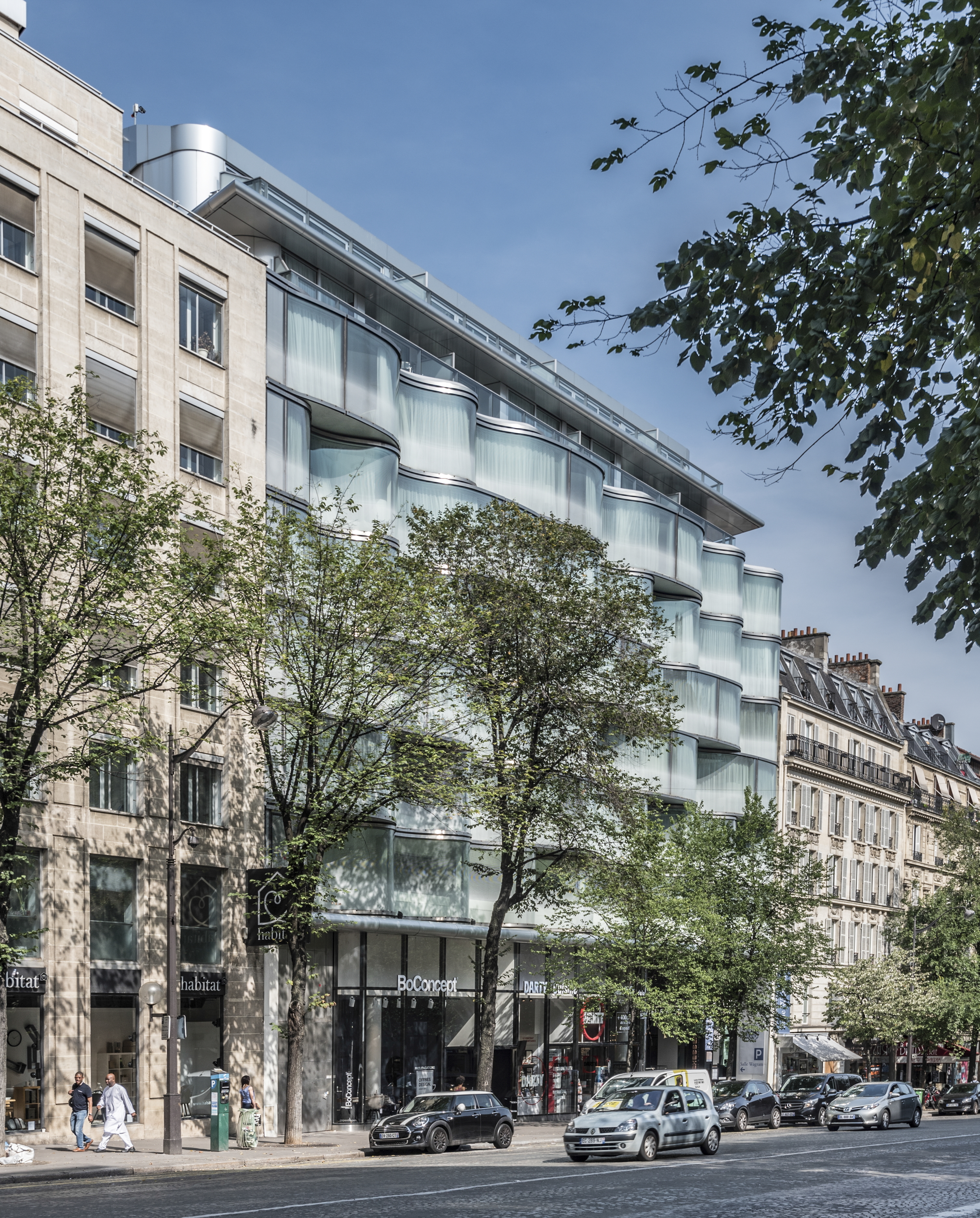 exterior, undulating glass facade, 2017 39 Avenue de Wagram, 75017, Paris, France