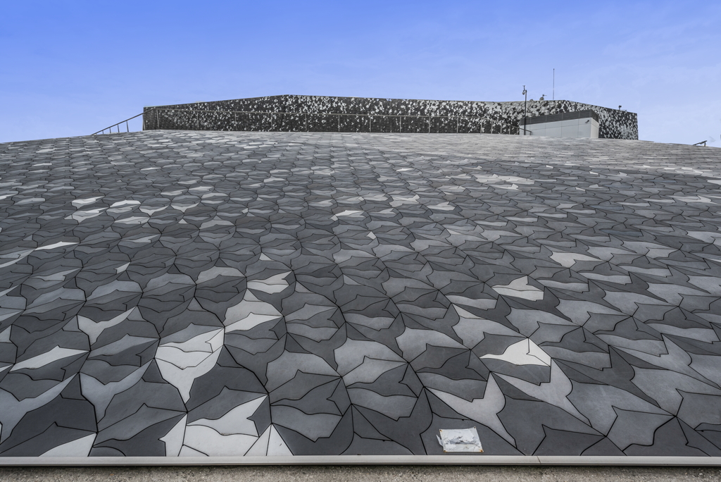 exterior, detail showing pattern covering the building, 2017 221 Avenue Jean Jaurès, 75019 Paris, France