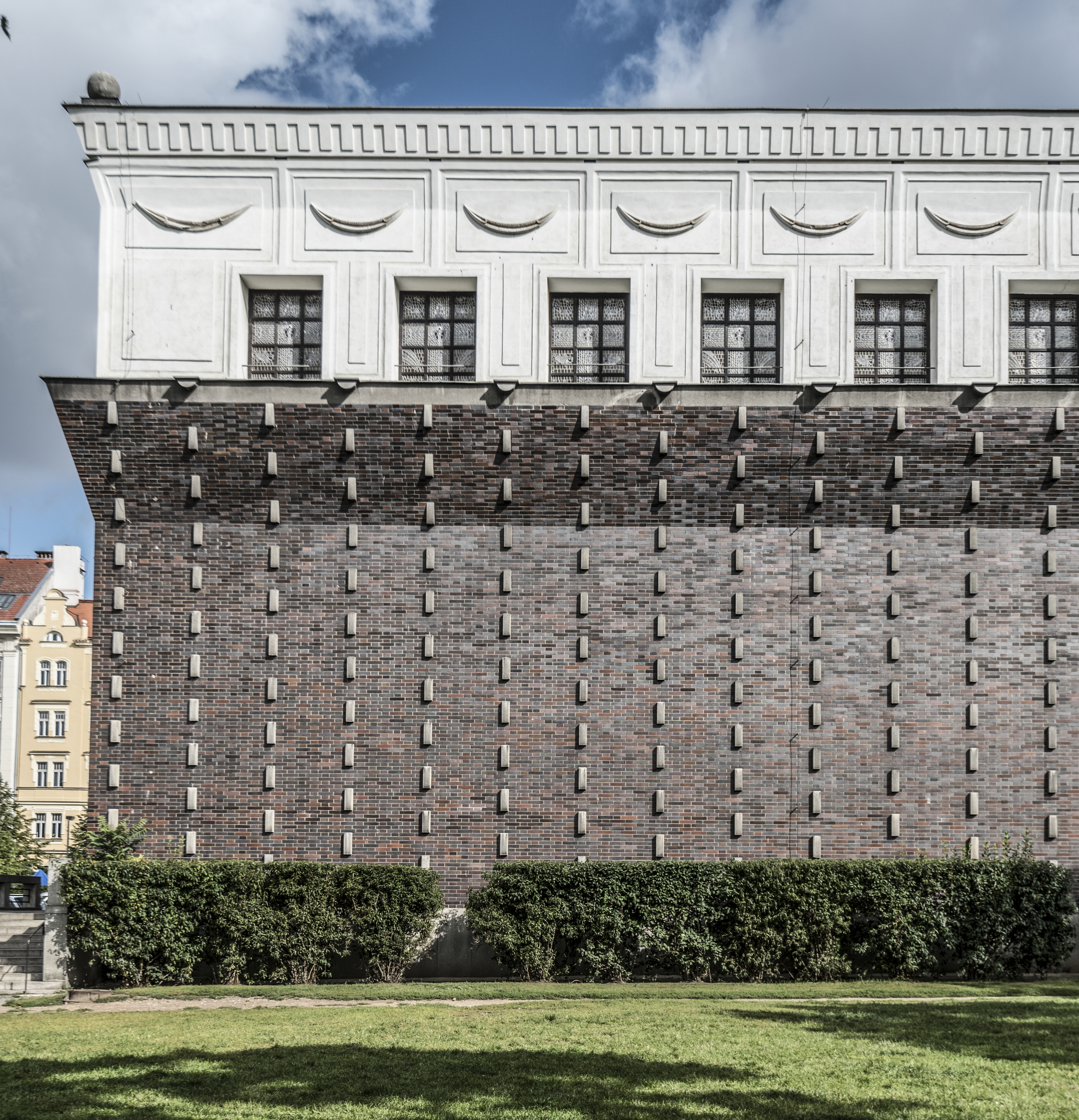 exterior, decorative brickwork, clerestory, 2017 Vinohradská 1438/70, 130 00 Prague, Czech Republic