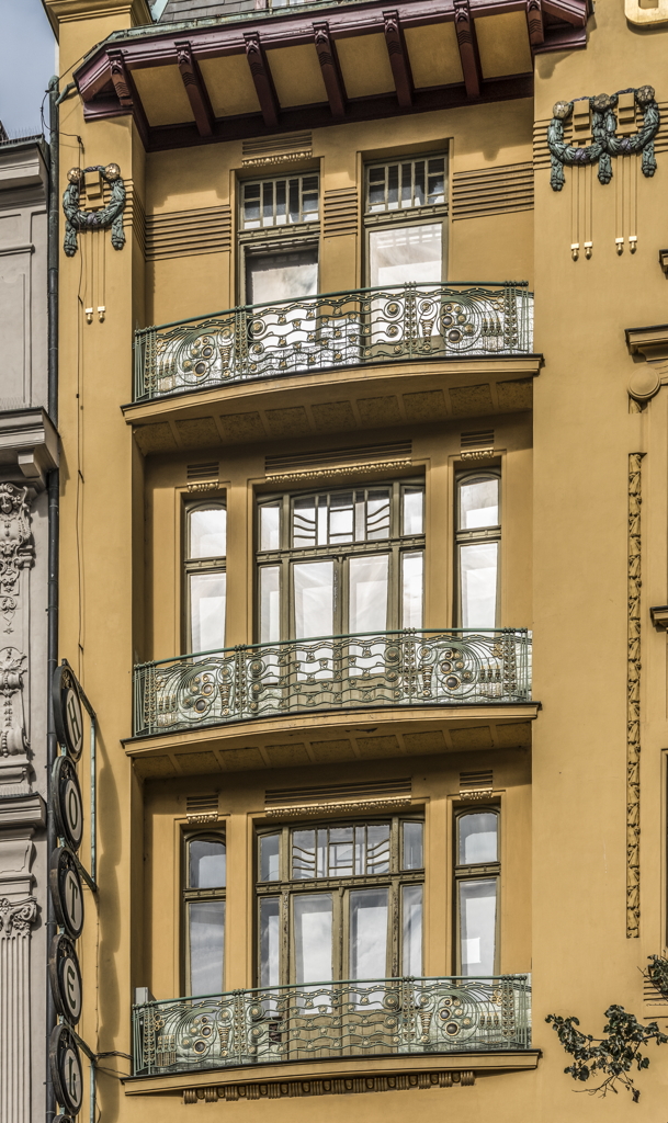 Hotels (Public accommodations), Architecture, Modern --20th century, Art nouveau, Architecture --Czech Republic, Windows