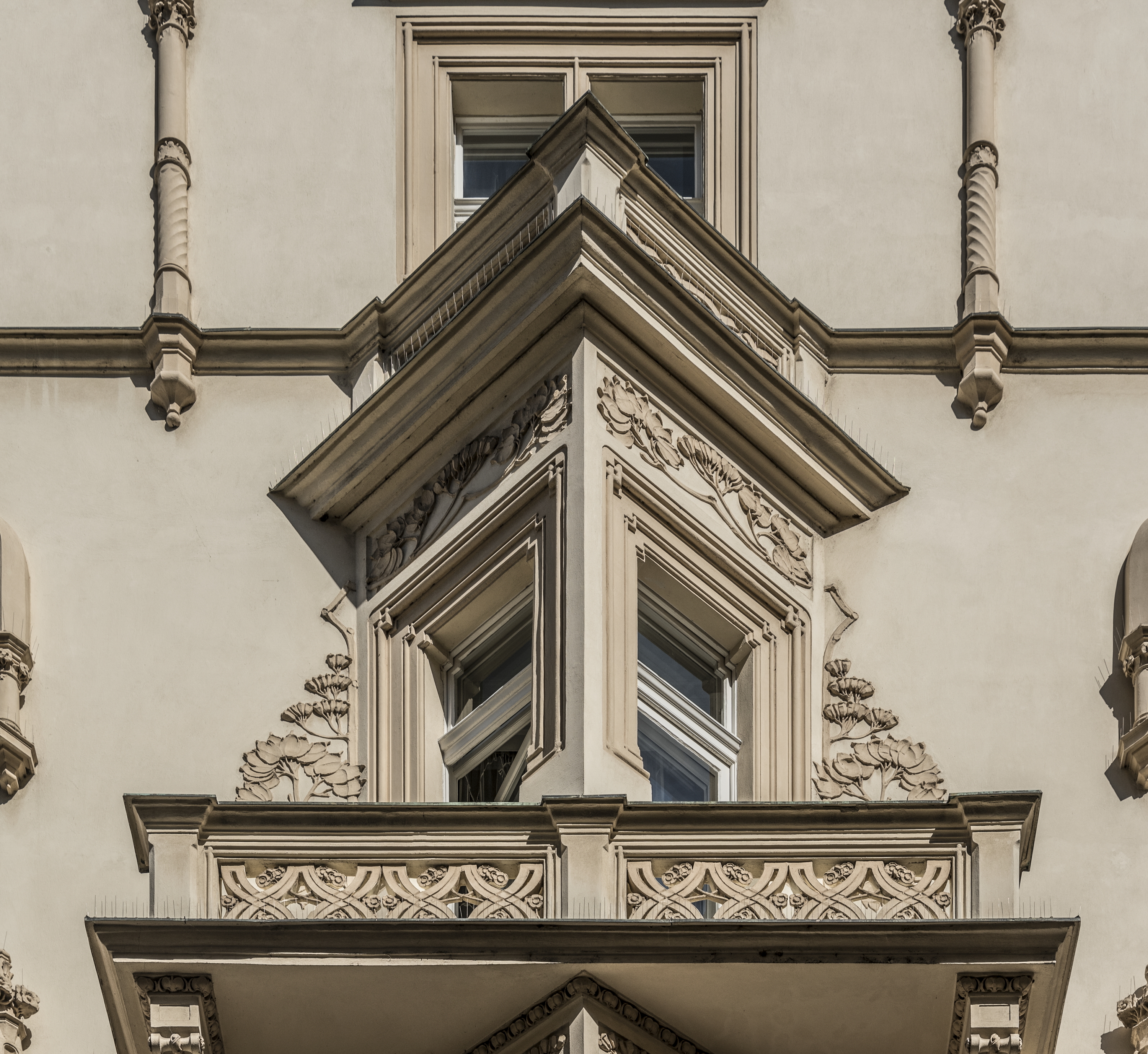 Hotels (Public accommodations), Architecture, Modern --20th century, Decoration and ornament, Architectural, Art nouveau, Architecture --Czech Republic, Windows