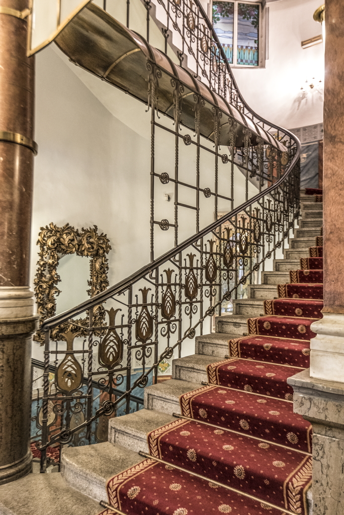 Hotels (Public accommodations), Architecture, Modern --20th century, Decoration and ornament, Architectural, Art nouveau, Architecture --Czech Republic, Stairs