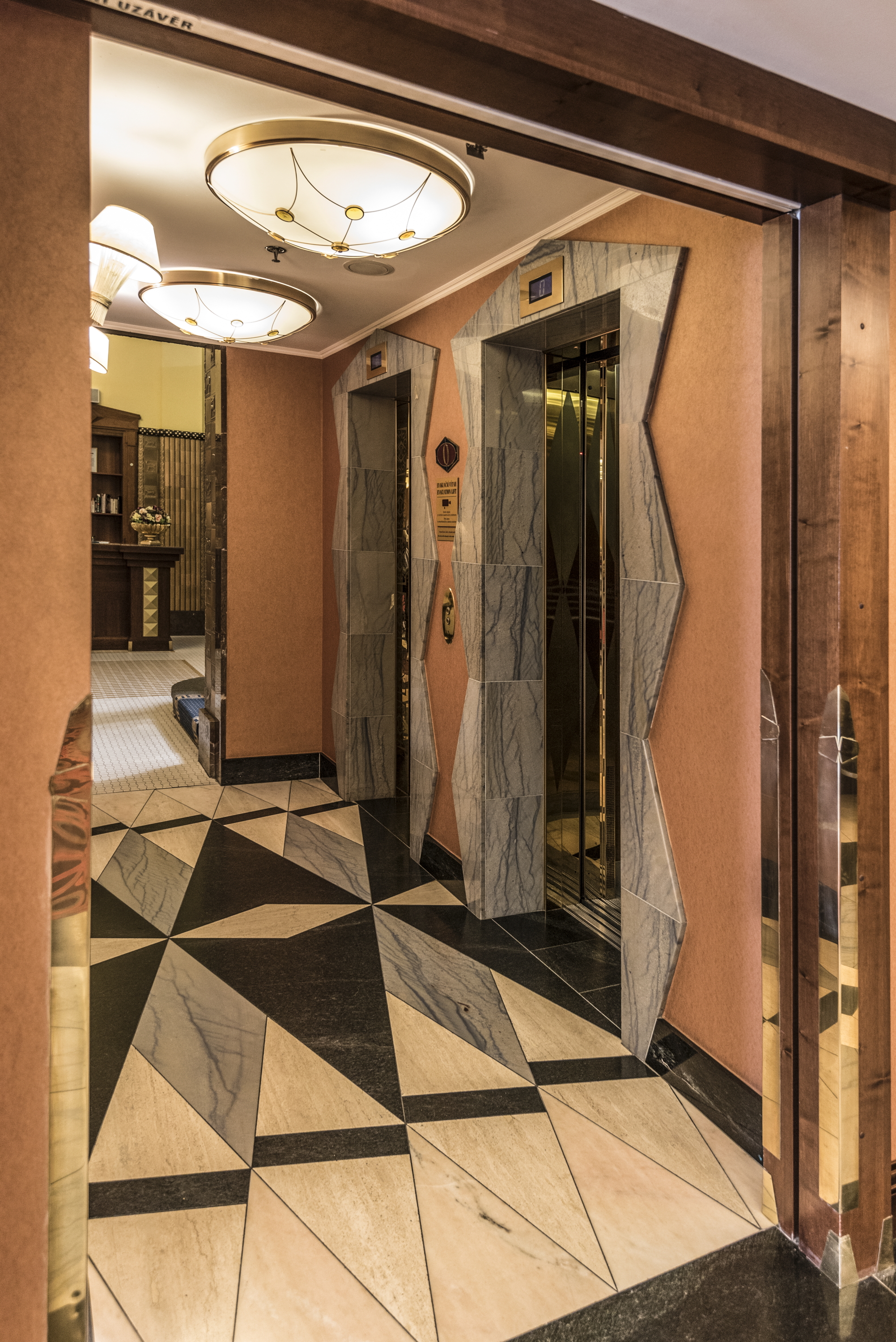 Hotels (Public accommodations), Architecture, Modern --20th century, Decoration and ornament, Architectural, Architecture --Czech Republic, Art deco (Architecture), Elevators