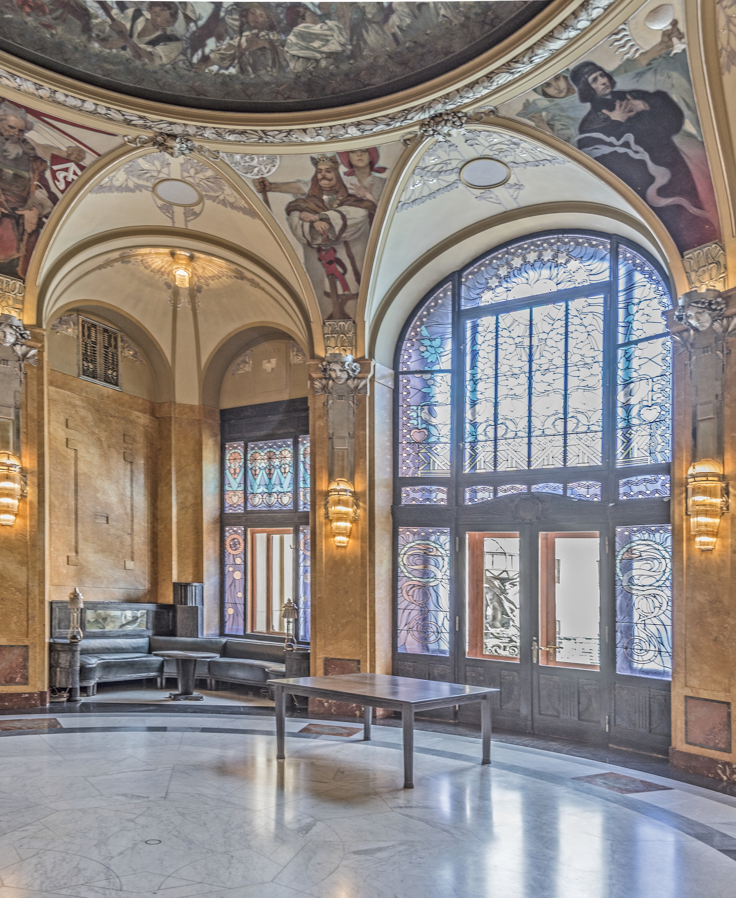 Concert halls, Architecture, Modern --20th century, Decoration and ornament, Architectural, Art nouveau, Architecture --Czech Republic, Halls, Stained glass (visual works)