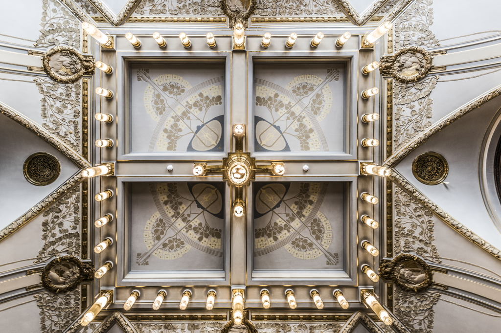 interior, ceiling lighting in Rieger Hall, 2017 nám. Republiky 5, 111 21 Staré Město, Prague, Czech Republic
