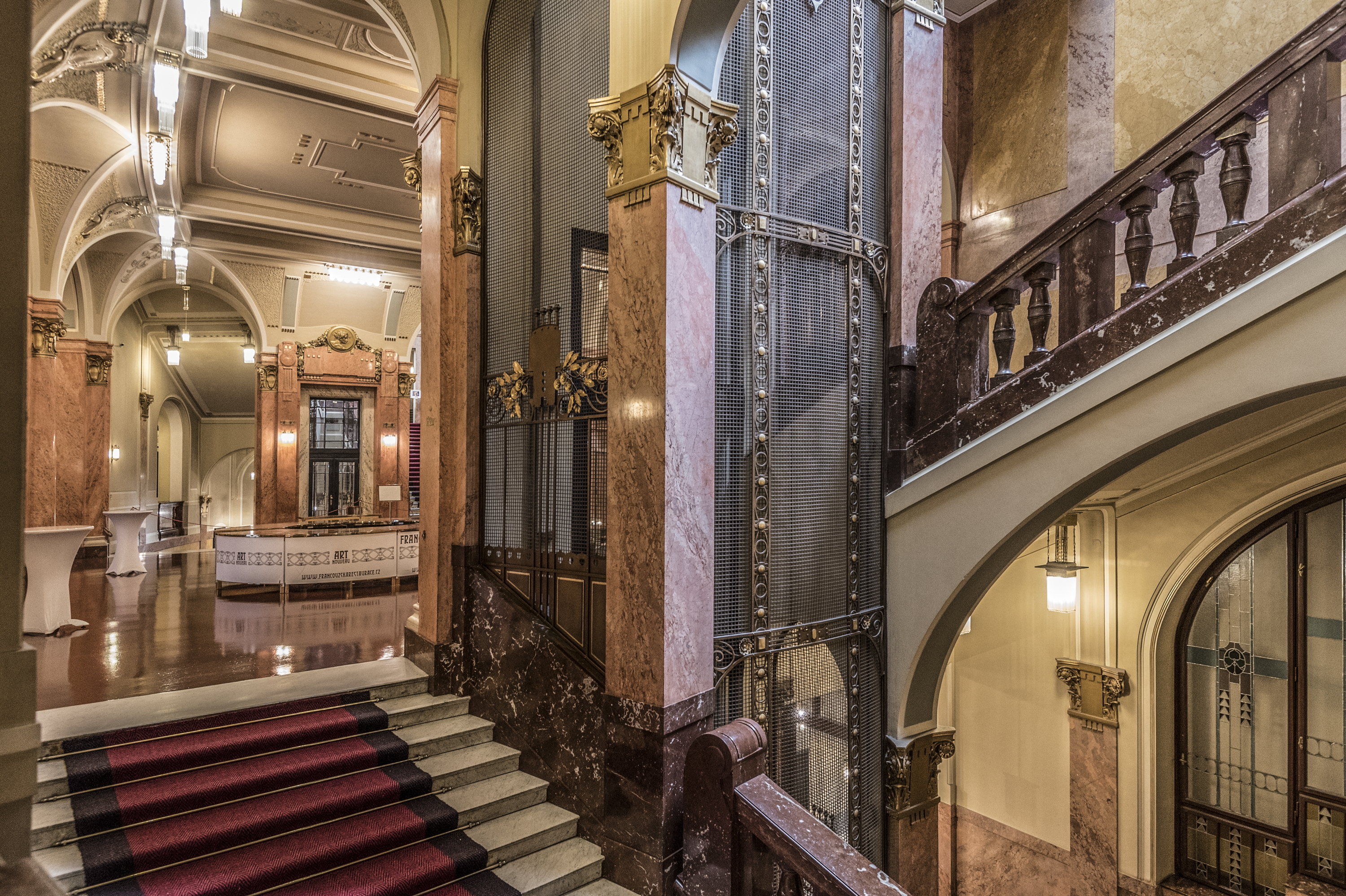 Concert halls, Architecture, Modern --20th century, Decoration and ornament, Architectural, Art nouveau, Architecture --Czech Republic, Stairs