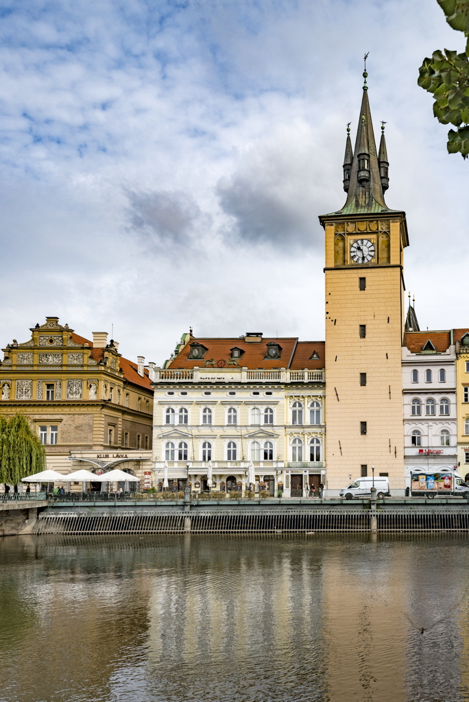 general view, Smetana Museum and clock tower seen from the Vltava River, 2017