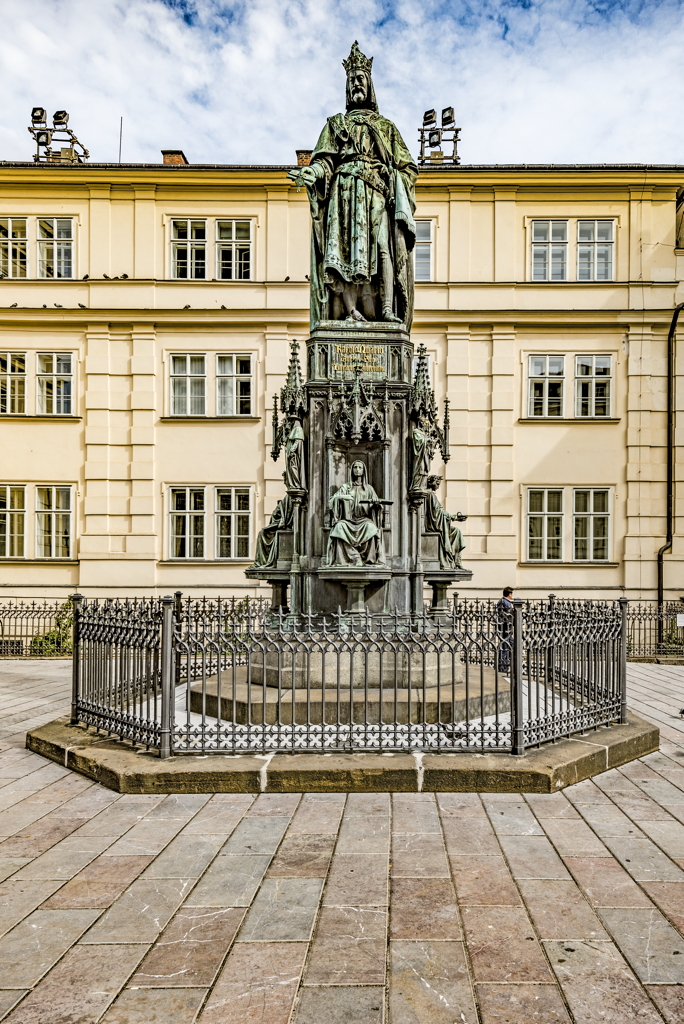general view, statue of Charles IV, Holy Roman Emperor, in Knights of the Cross Square, 2017
