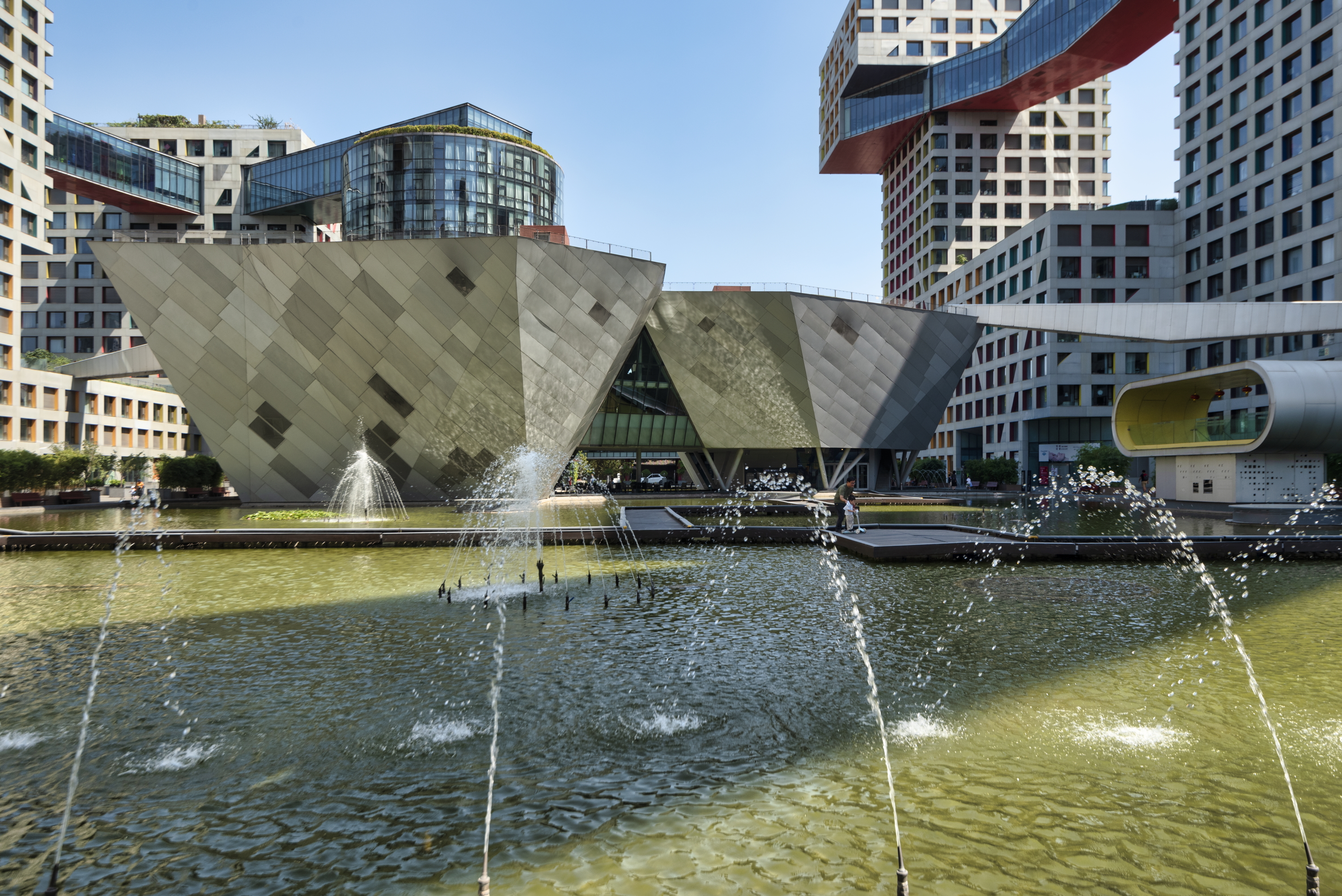 Skyscrapers, Office buildings, Complexes, Architecture, Modern --21st century, Architecture --China, Fountains, Courtyards, Pools
