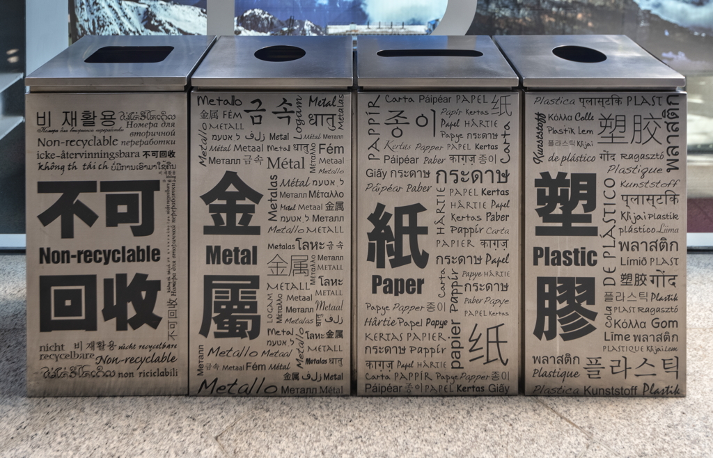 general view, recycling bins in the mall, 2019