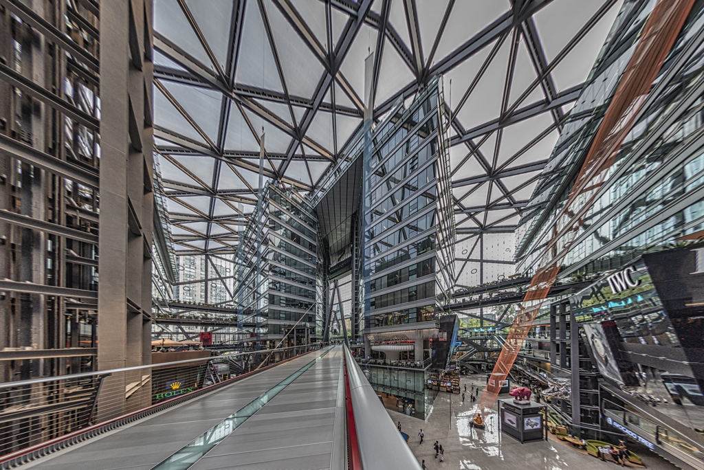 general view, skywalk through the atrium of the mall, 2019