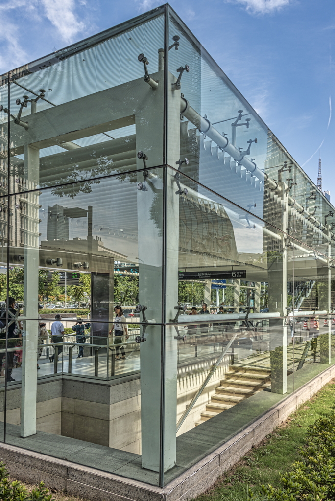 general view, detail of the exterior of the Lujiazui Metro Station in the Pudong District, 2019