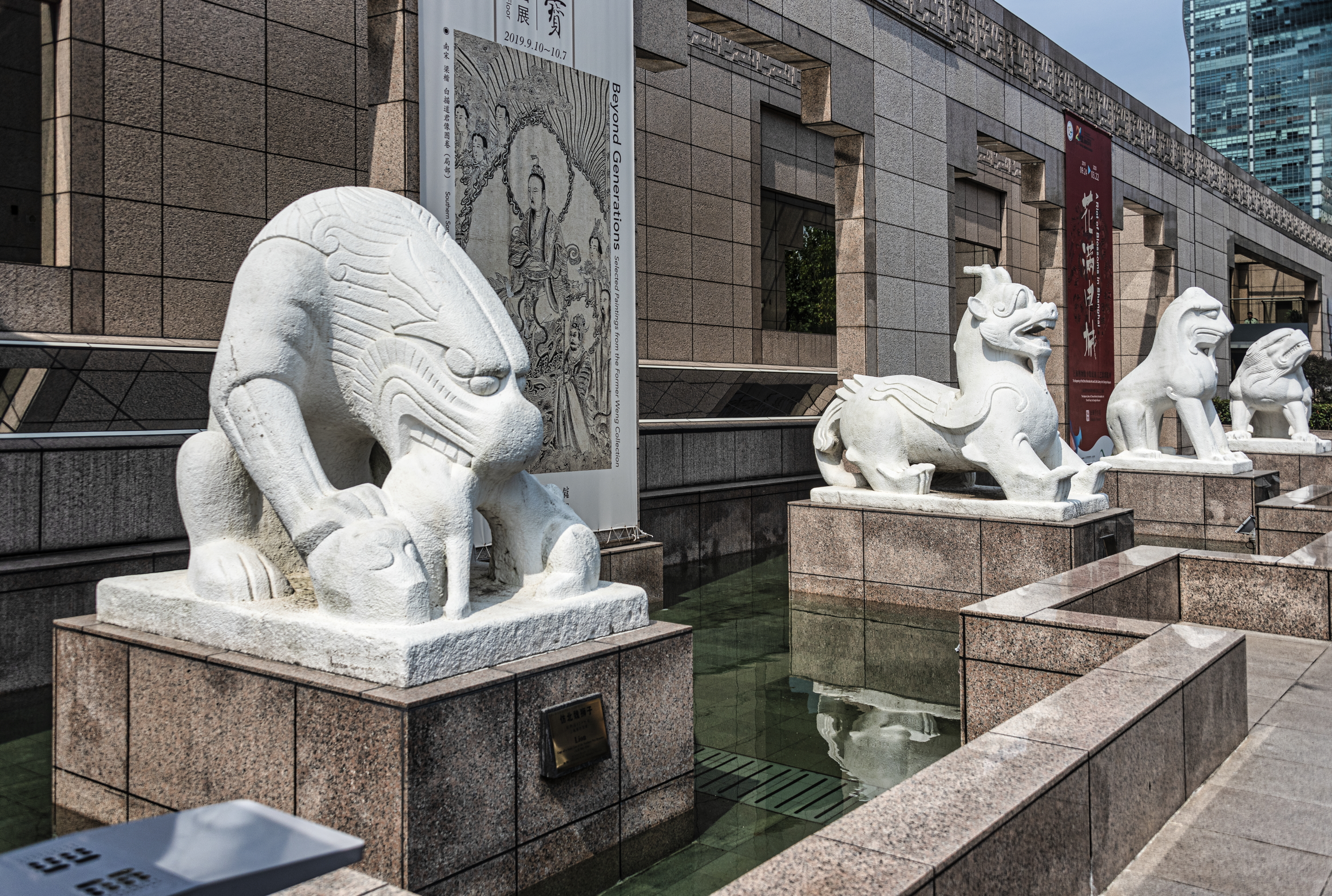 general view, traditional guardian lion sculptures outside the museum, 2019 88 Nanjing Road, Shanghai