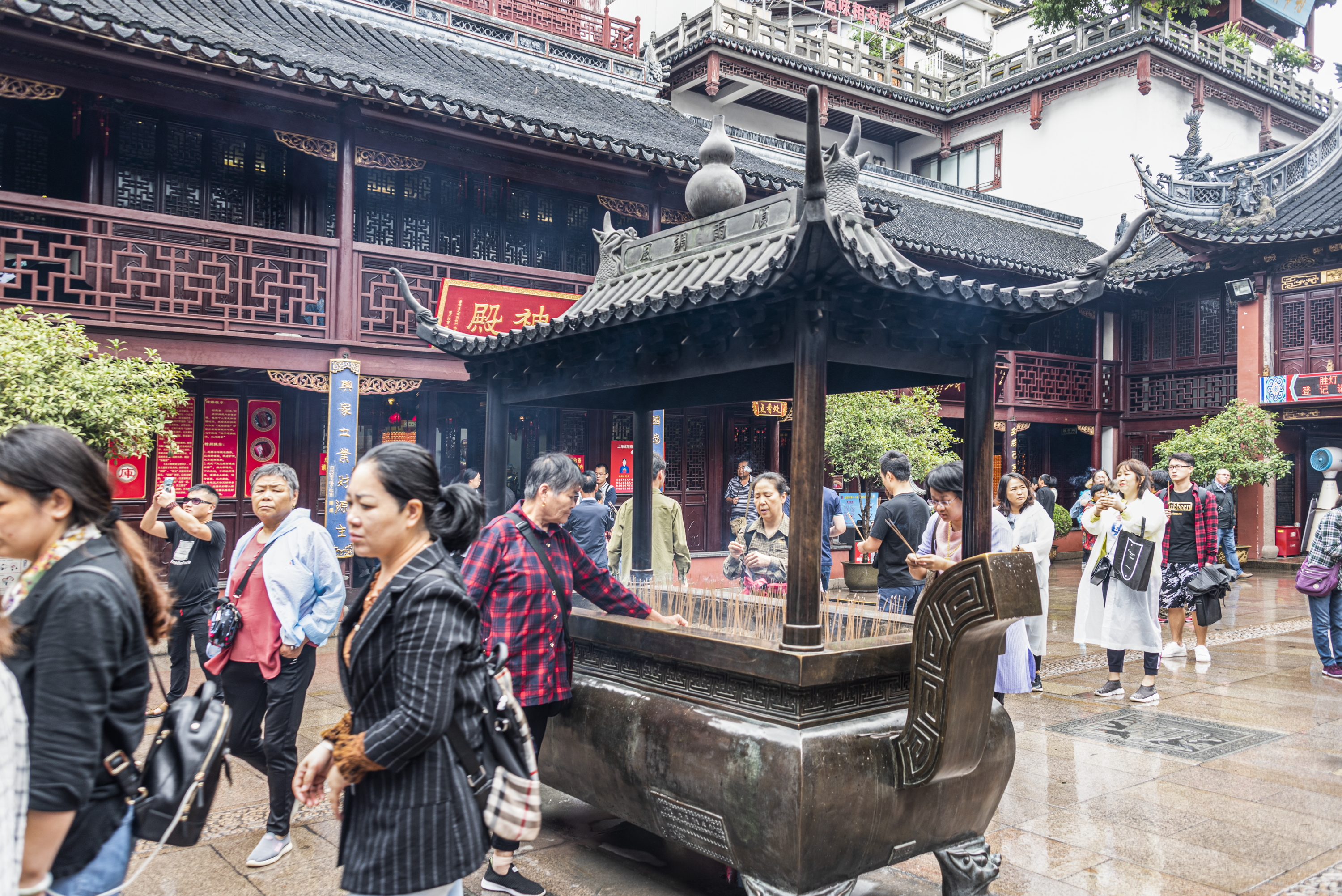 general view, tourists leaving incense sticks in a bronze incense urn, 2019