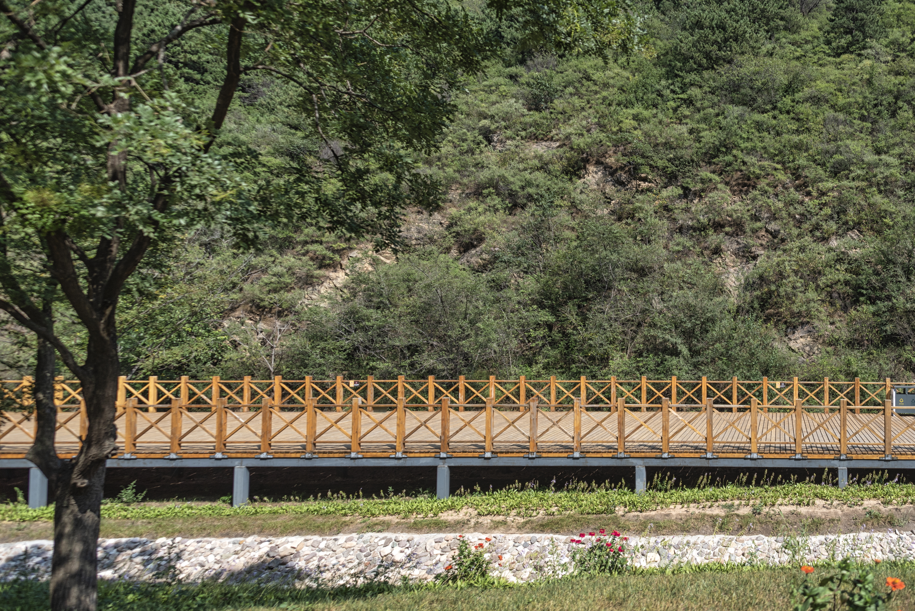 general view, raised wooden walkway at Jinshanling, 2019