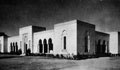 general view, exterior view of dining hall of University hostels., 1944