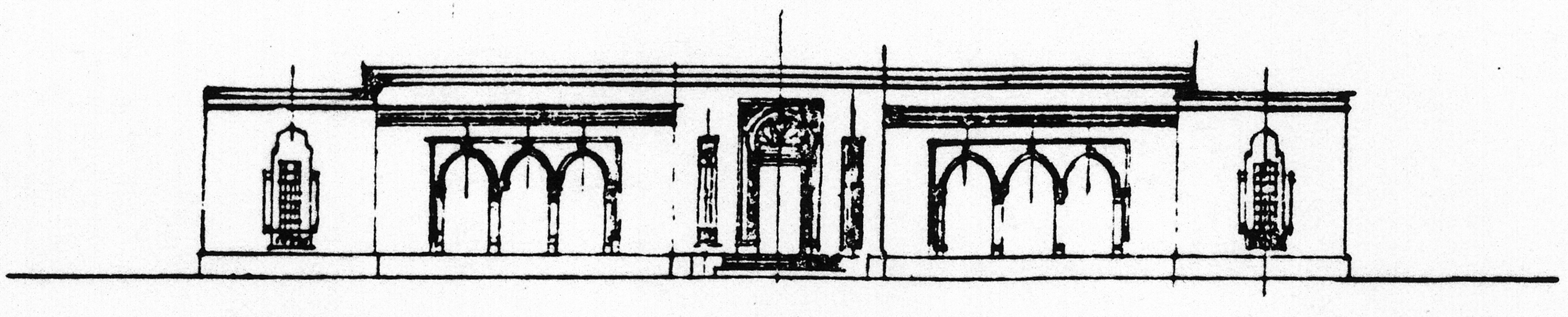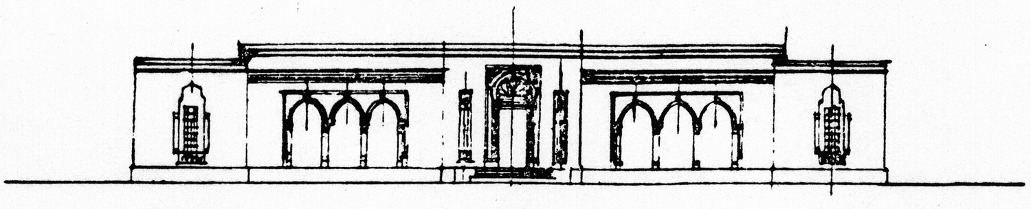 elevations (drawing), Front elevation of dinning hall and kitchen, 1944