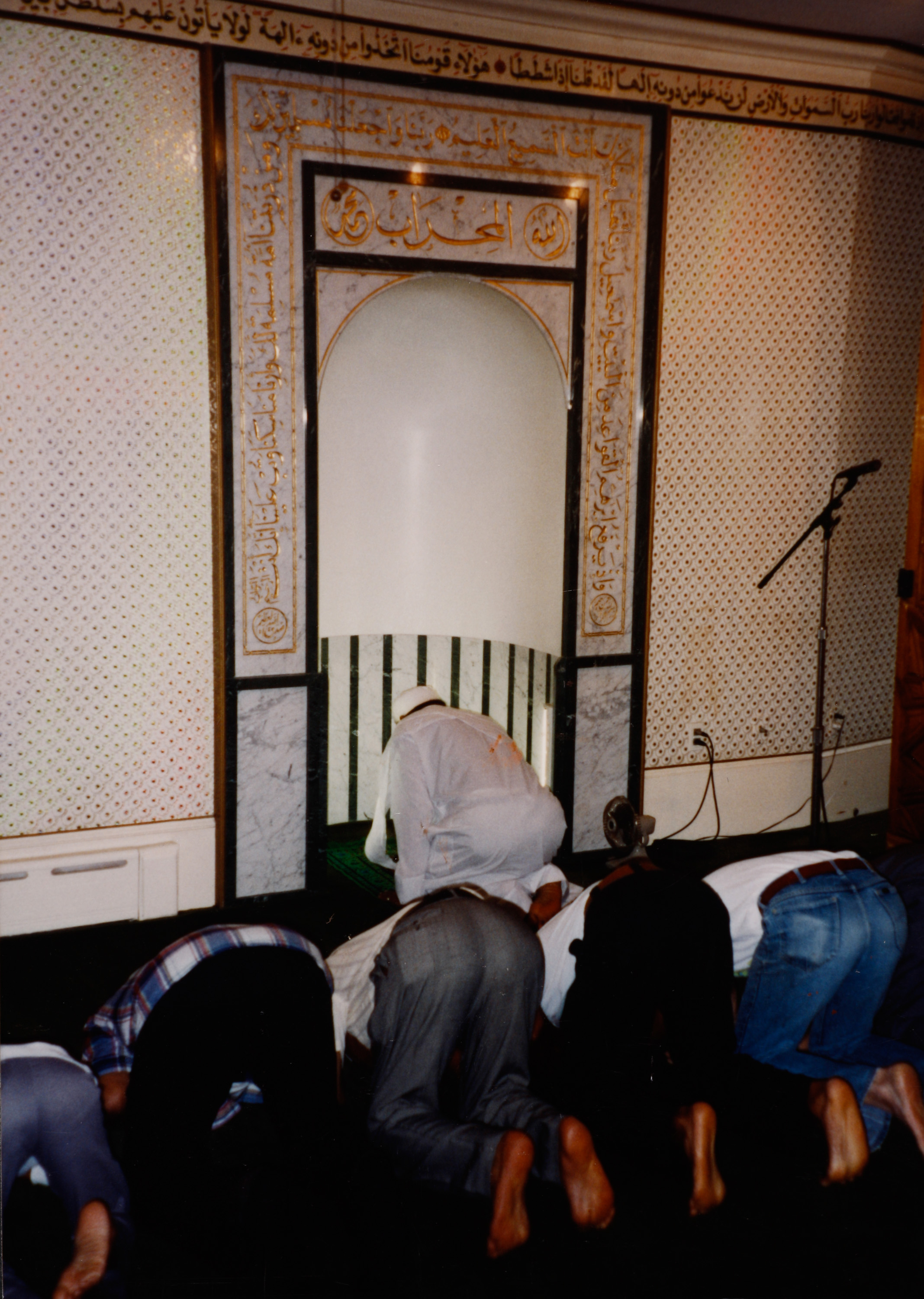 5820 Overbrook Avenue, Philadelphia, PA 19131 interior, prayer hall and mihrab with praying men, 1993
