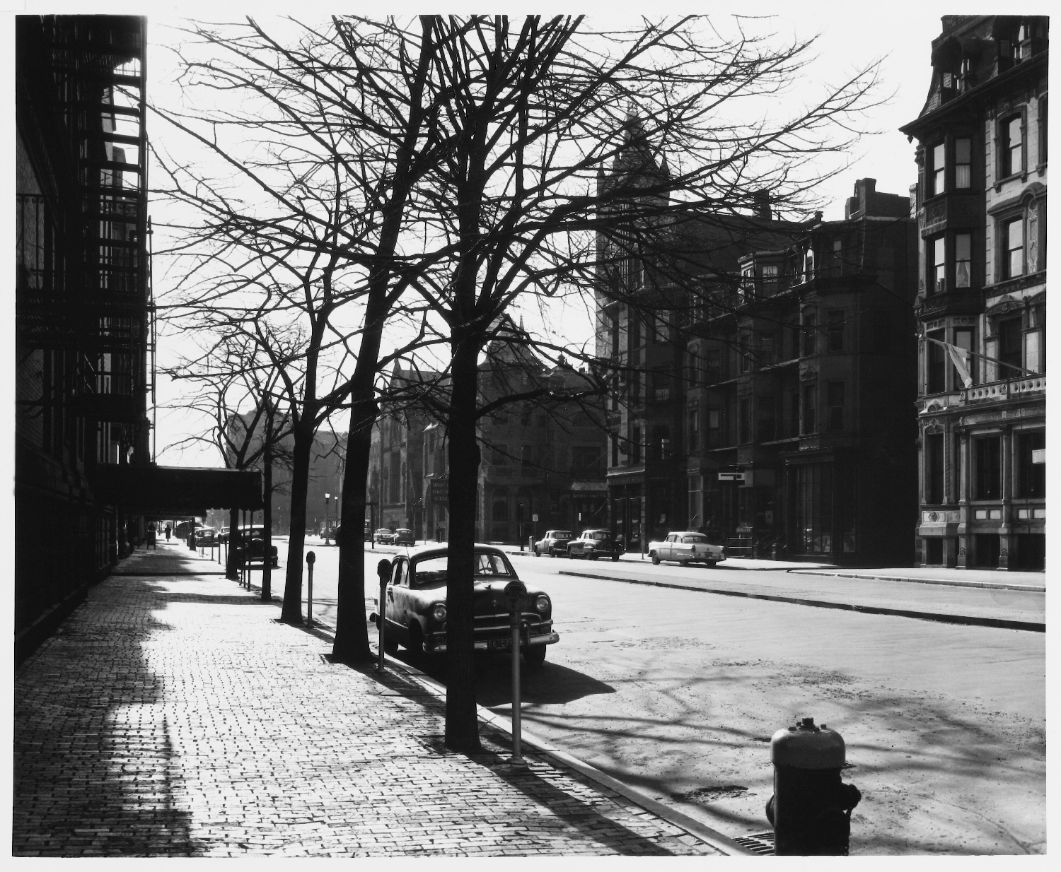Automobiles, Trees, Boston (Mass.), City and town life, Back Bay (Boston, Mass.), Parking meters, Massachusetts Institute of Technology, Streetscapes, Urban areas, Land use, Urban, City planning, Urban planning and environment, Documentary photography, Sidewalks, Dartmouth Street, (Boston, MA), Kepes/Lynch Photograph Collection, Old South Church (Boston, Mass.)