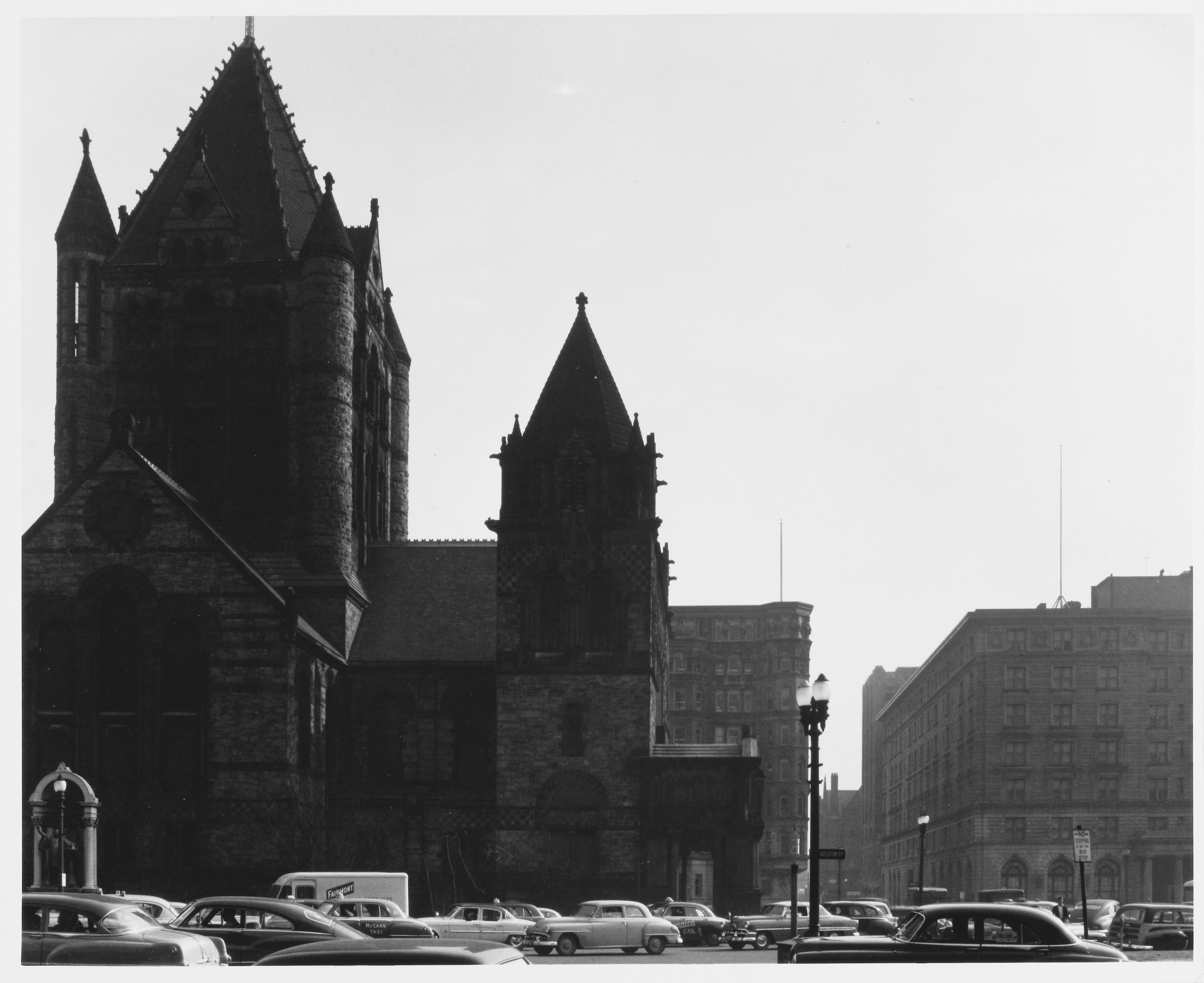 Automobiles, Boston (Mass.), City and town life, Back Bay (Boston, Mass.), Massachusetts Institute of Technology, Urban areas, City traffic, Land use, Urban, City planning, Urban planning and environment, Documentary photography, Romanesque revival (Architecture), Boylston Street, Exeter to Clarendon, (Boston, MA), Kepes/Lynch Photograph Collection, Trinity Church (Boston, Mass.)