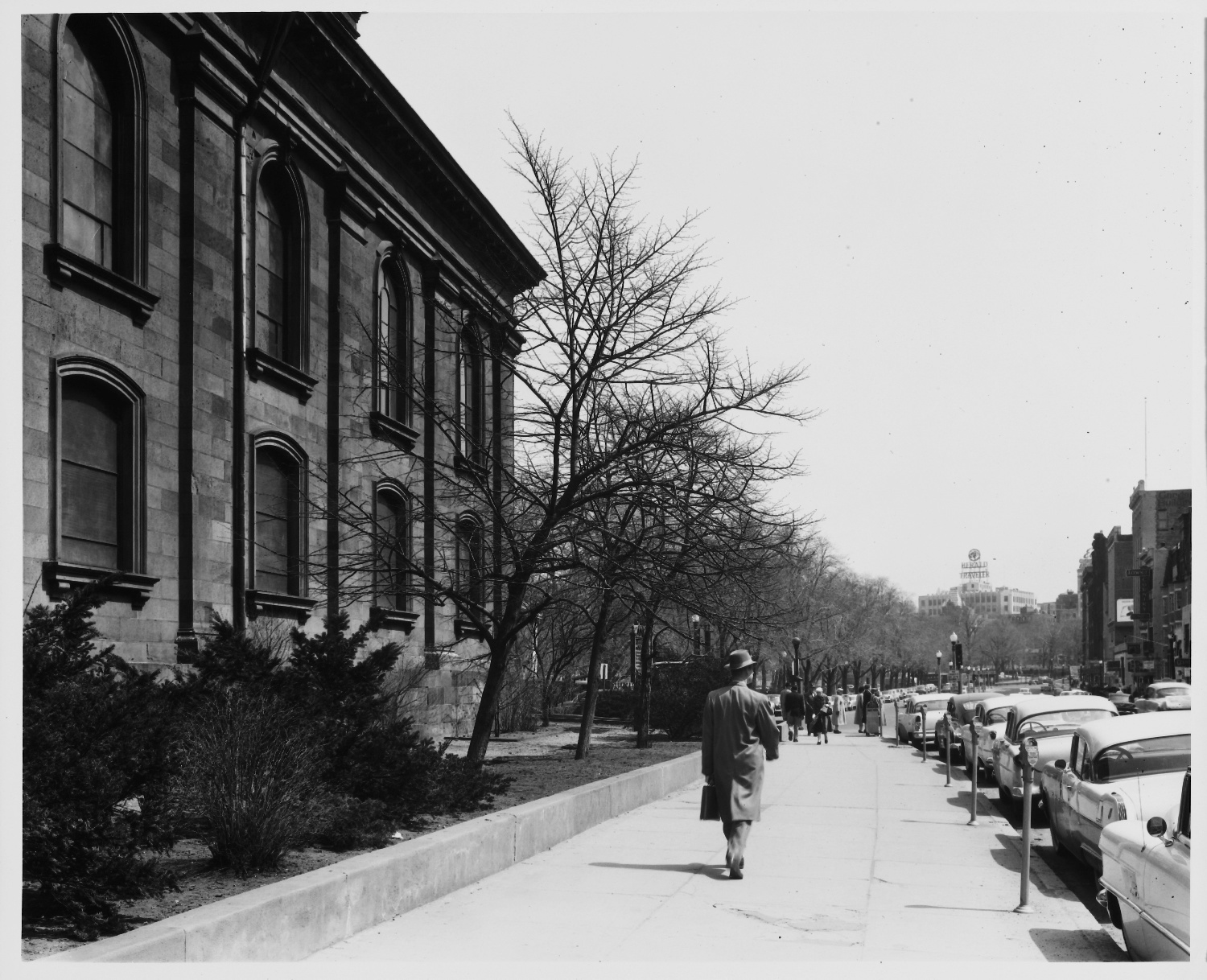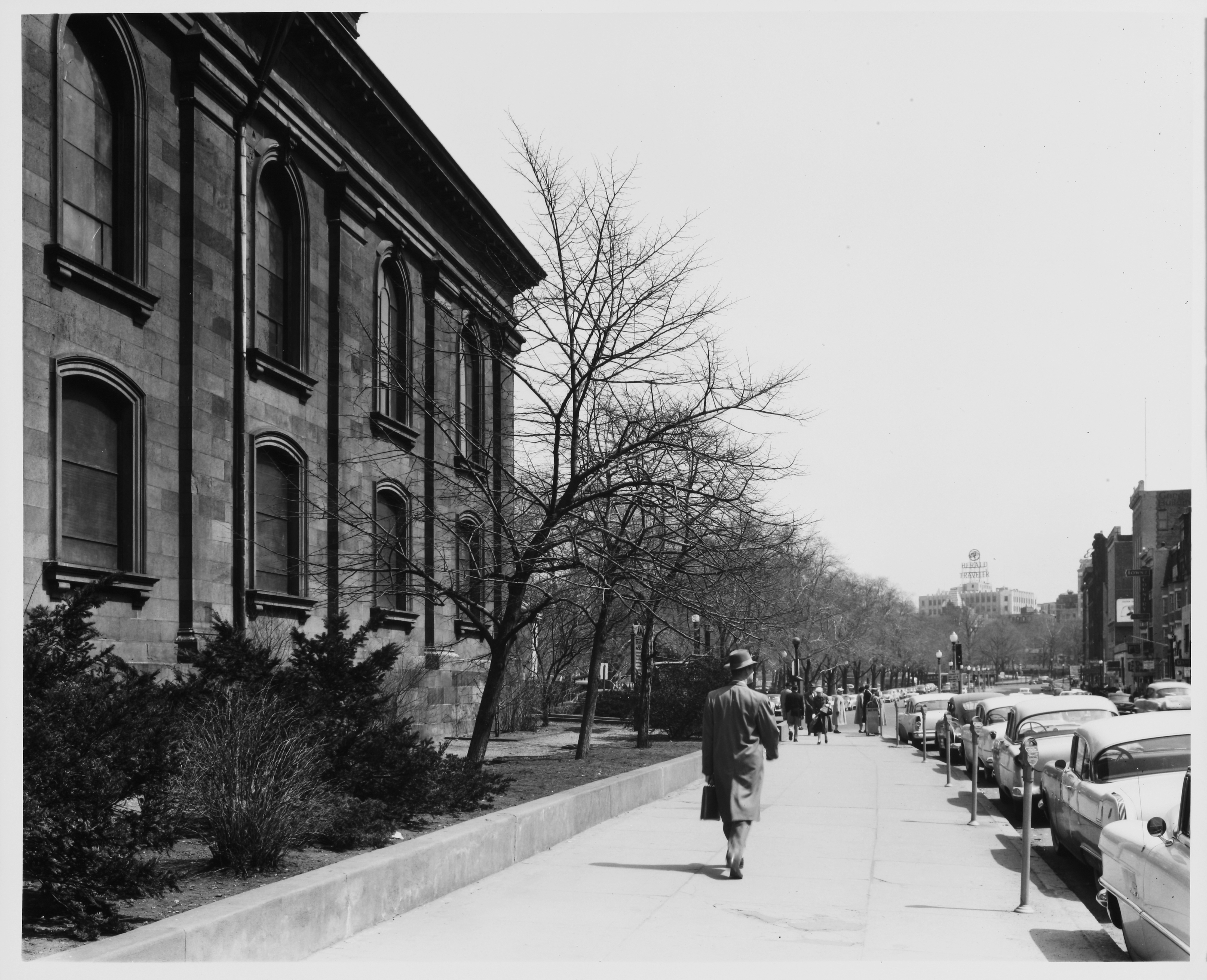 City and town life, Street lighting, Back Bay (Boston, Mass.), Massachusetts Institute of Technology, Streetscapes, Pedestrians, Urban areas, Land use, Urban, City planning, Urban planning and environment, Documentary photography, Sidewalks, Berkeley to Boylston Streets, (Boston, MA), Boston Common and Public Garden (Boston, MA), Kepes/Lynch Photograph Collection, Arlington Street Church