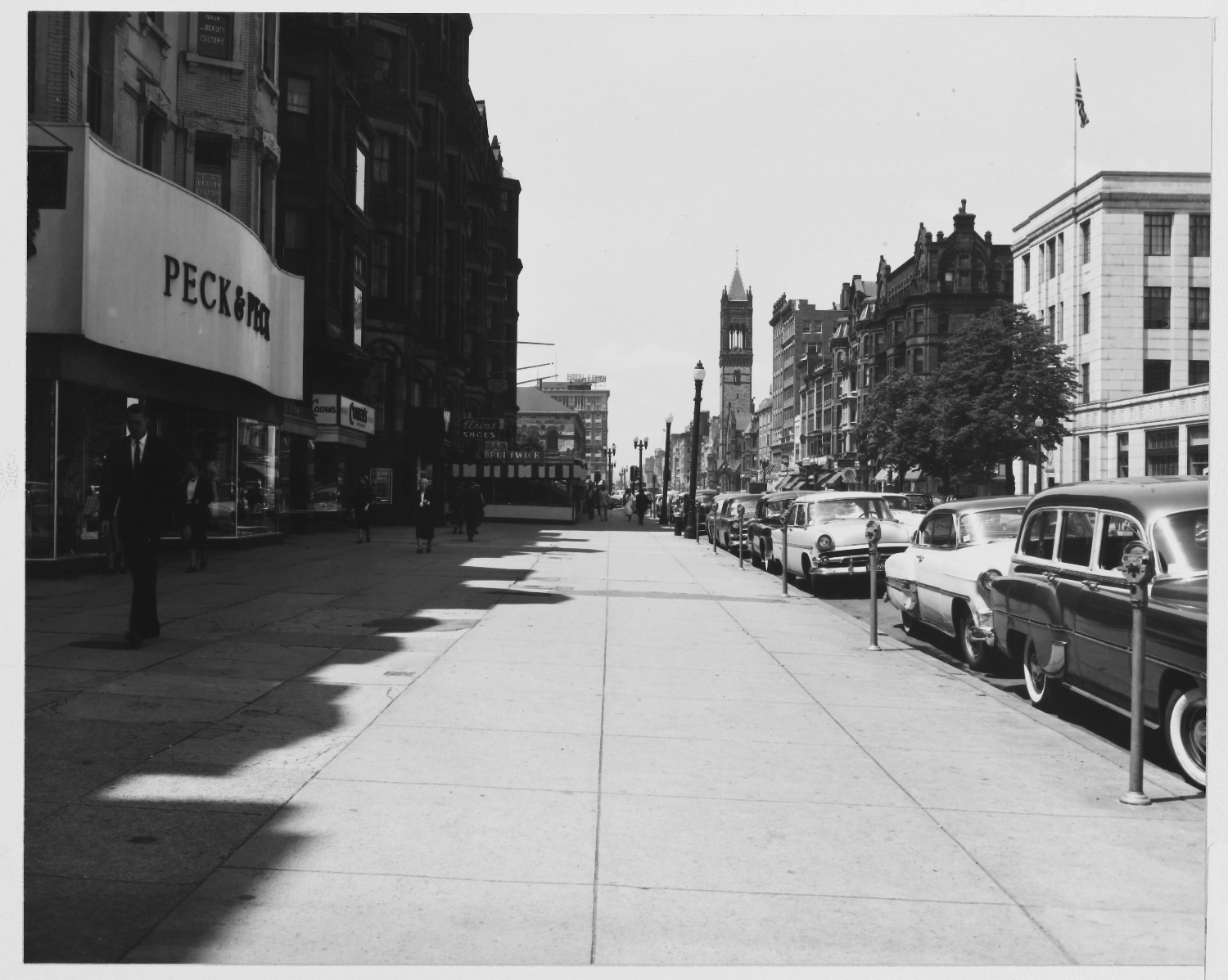 50 ft. Intervals, Boylston Street, Facing West, Sidewalk with Pedestrians, Old South Church in Background