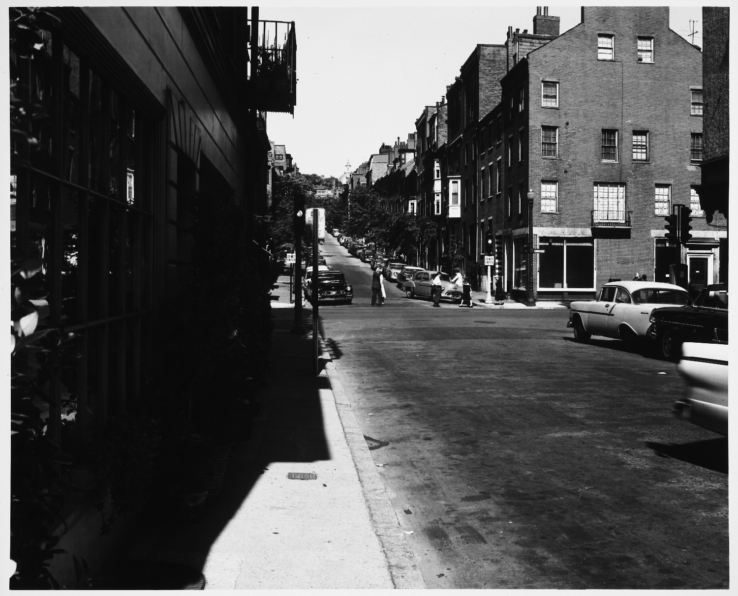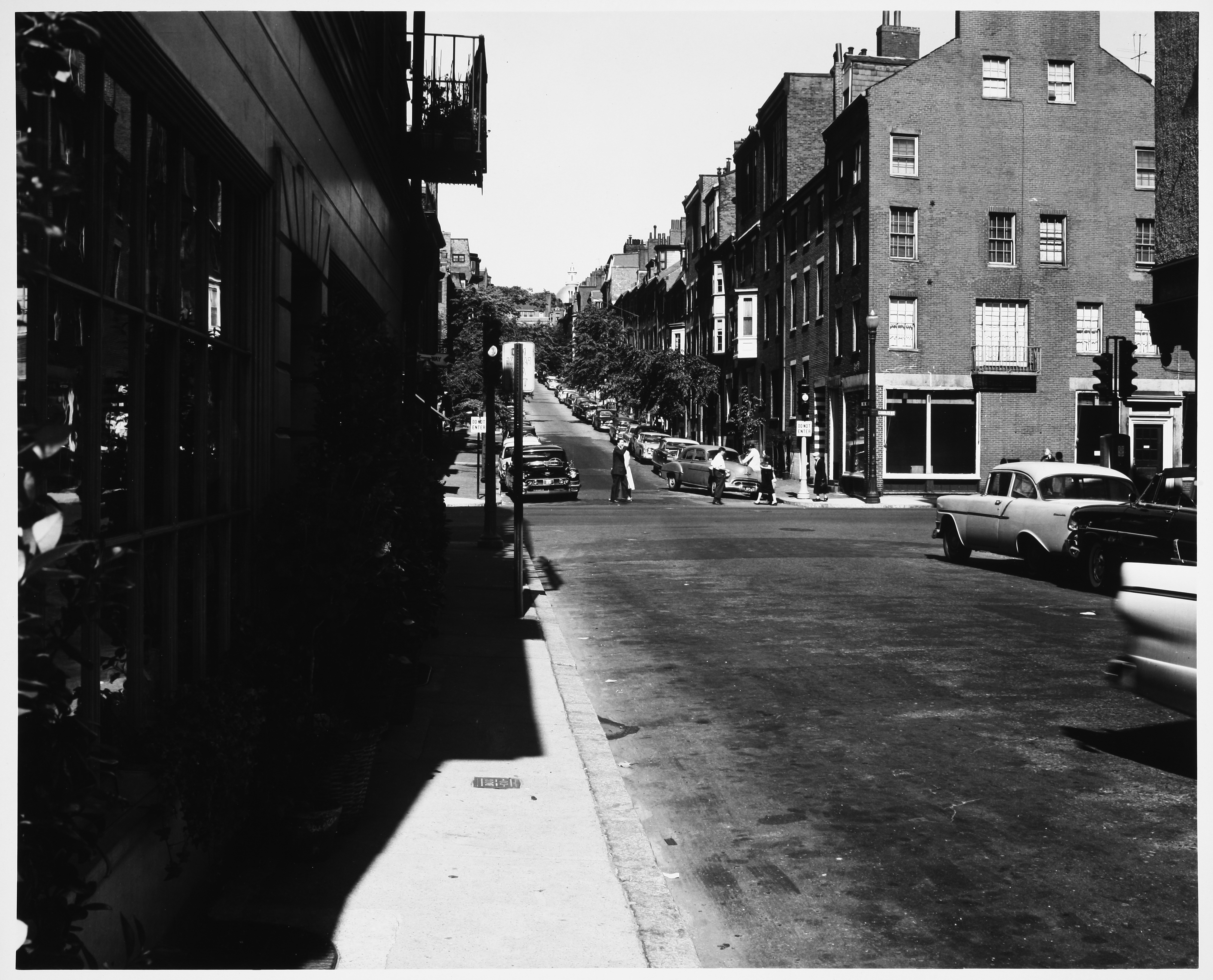 Brickwork, Boston (Mass.), City and town life, Traffic signs, Traffic signals, Massachusetts Institute of Technology, Pedestrians, Urban areas, Land use, Urban, City planning, Storefronts, Urban planning and environment, Beacon Hill (Boston, Mass.), Documentary photography, Kepes/Lynch Photograph Collection
