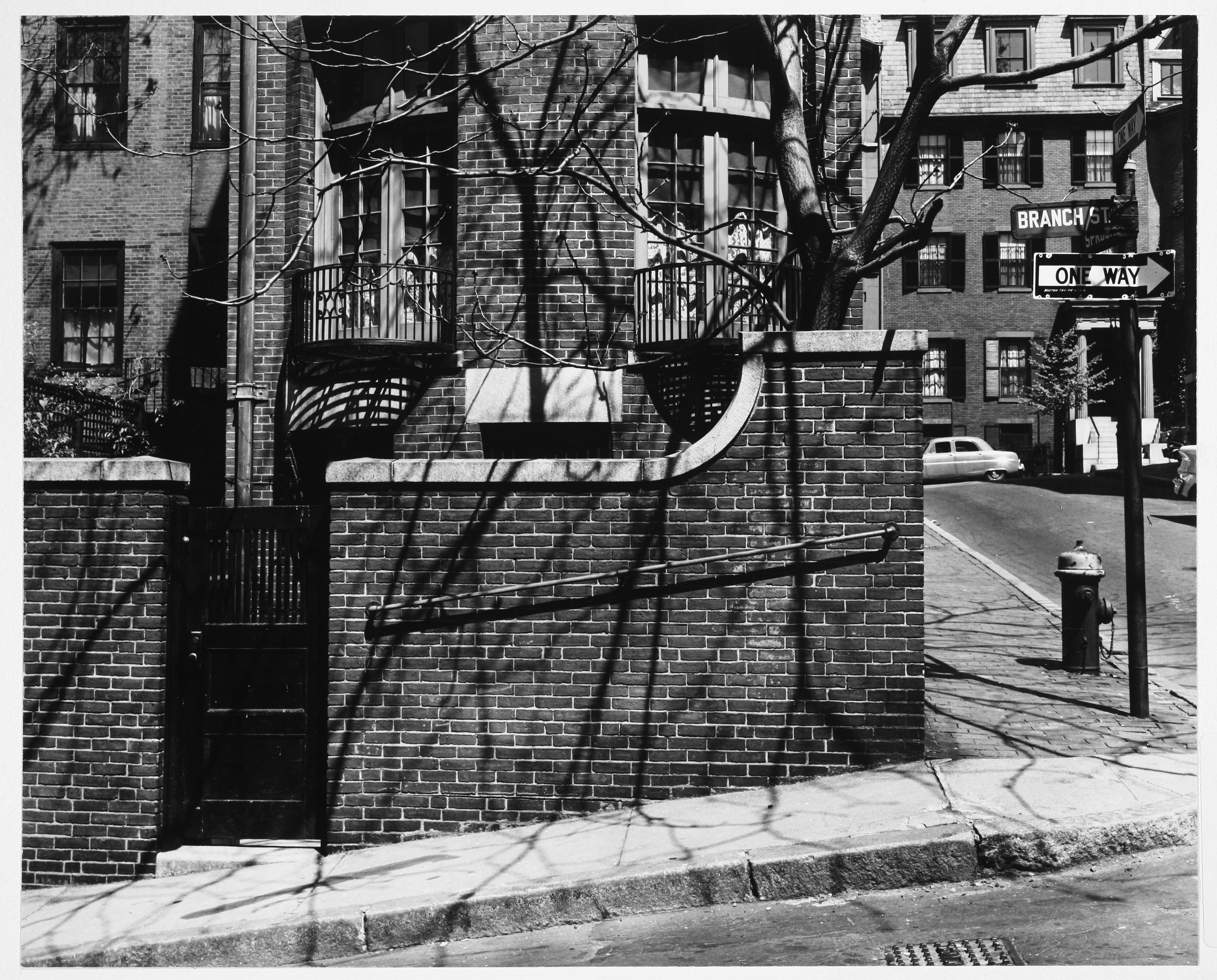 Brickwork, Boston (Mass.), City and town life, Traffic signs, Row houses, Massachusetts Institute of Technology, Urban areas, Land use, Urban, City planning, Urban planning and environment, Beacon Hill (Boston, Mass.), Documentary photography, Kepes/Lynch Photograph Collection