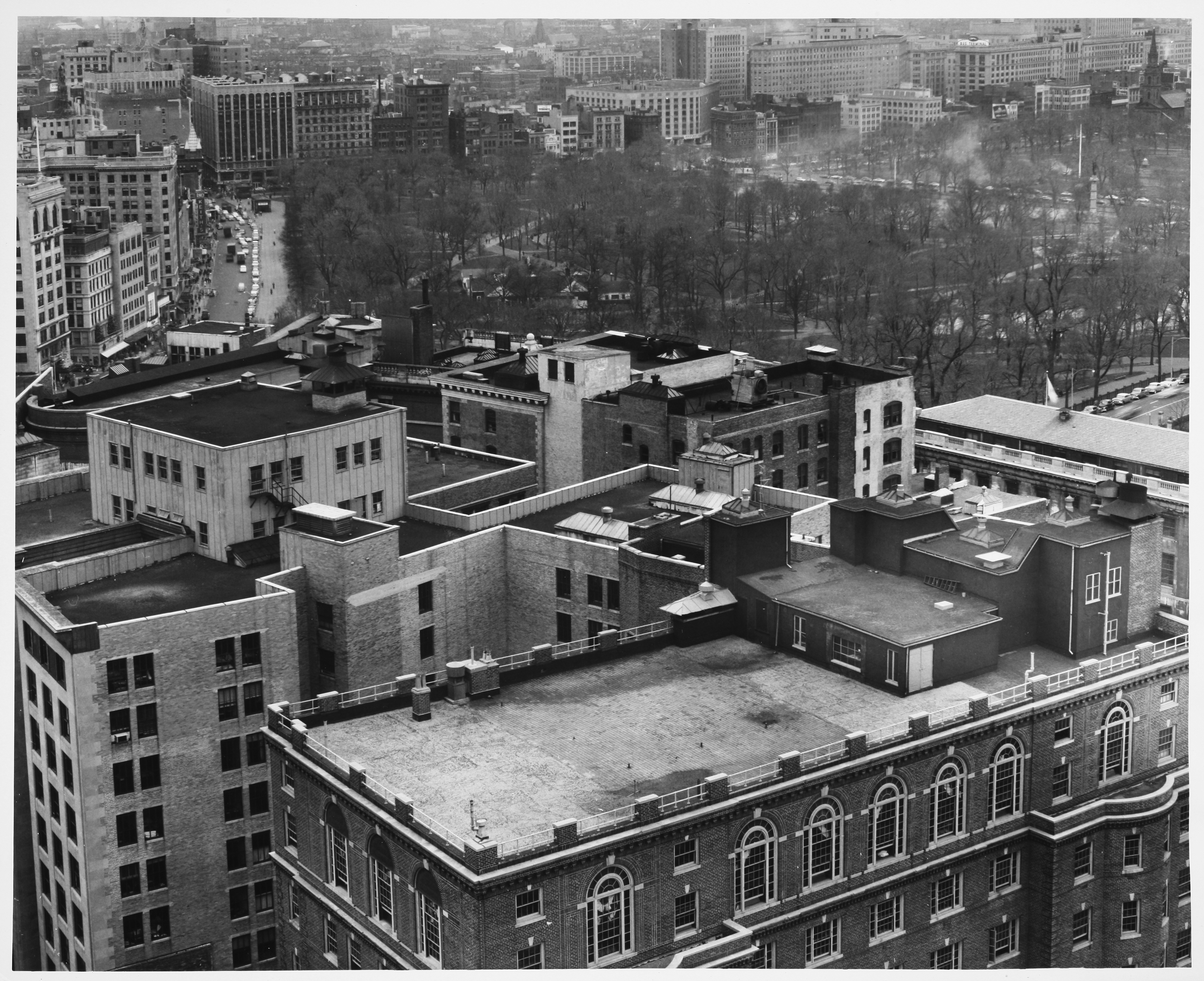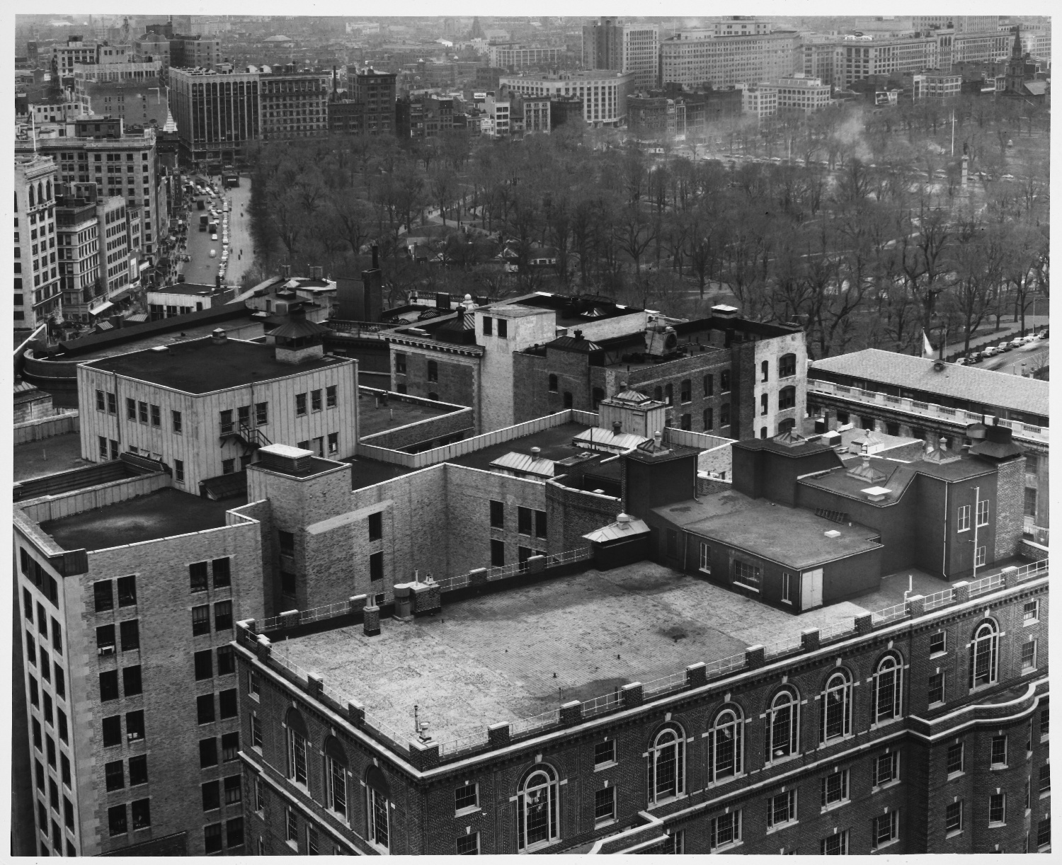 Boston Common, Aerial View Looking South from Fourteenth Floor of Suffolk County Courthouse, Rooftops, Tremont Street