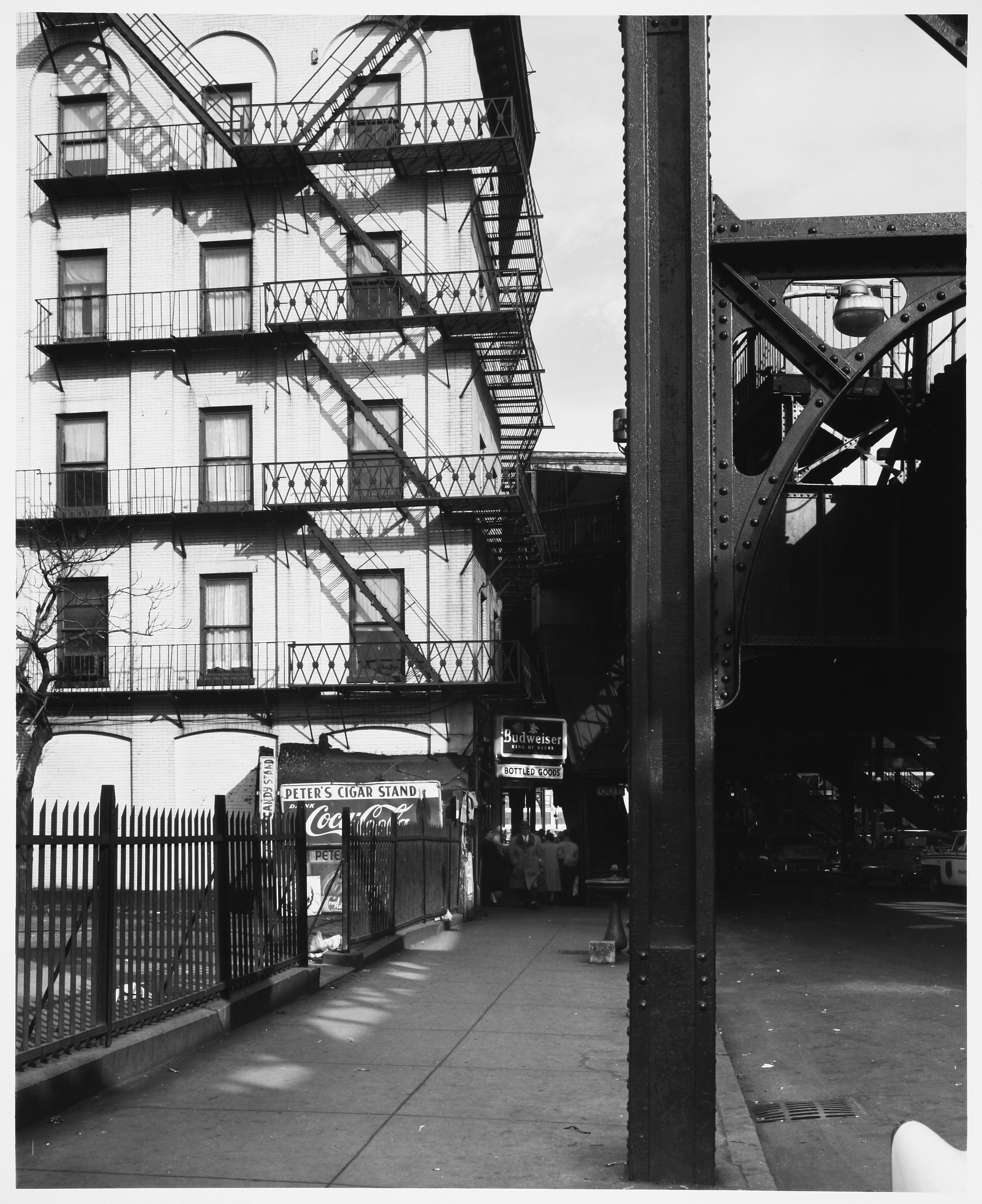 Fire escapes, Shop signs, Boston (Mass.), City and town life, Massachusetts Institute of Technology, Urban areas, Land use, Urban, City planning, Urban planning and environment, Documentary photography, Sidewalks, Railroads, elevated, Washington Street, Broadway to Massachusetts Avenue, (Boston, MA), Kepes/Lynch Photograph Collection