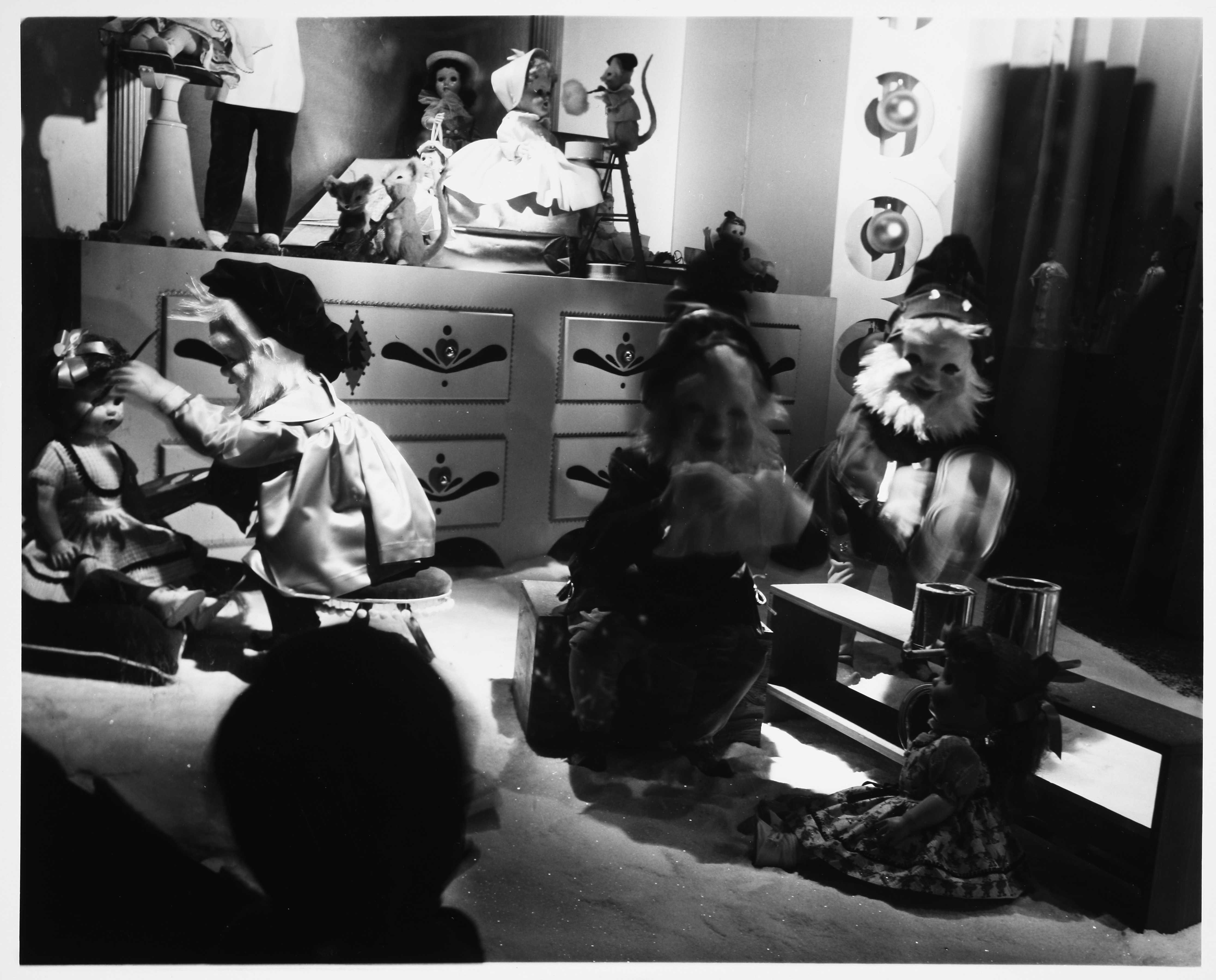 Dolls, Toys (Recreational artifacts), Windows, Boston (Mass.), City and town life, Christmas, Massachusetts Institute of Technology, Urban areas, Land use, Urban, City planning, Urban planning and environment, Documentary photography, Filene's (Department Store), Store Window Displays, Kepes/Lynch Photograph Collection