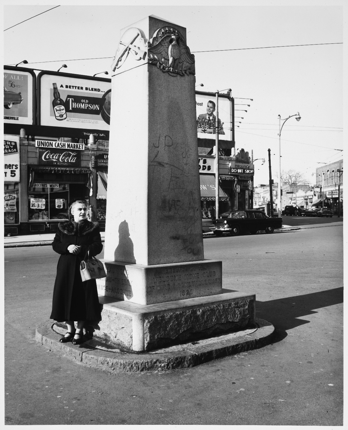 World War I Memorial, Union Square, Somerville, Woman Standing at Left