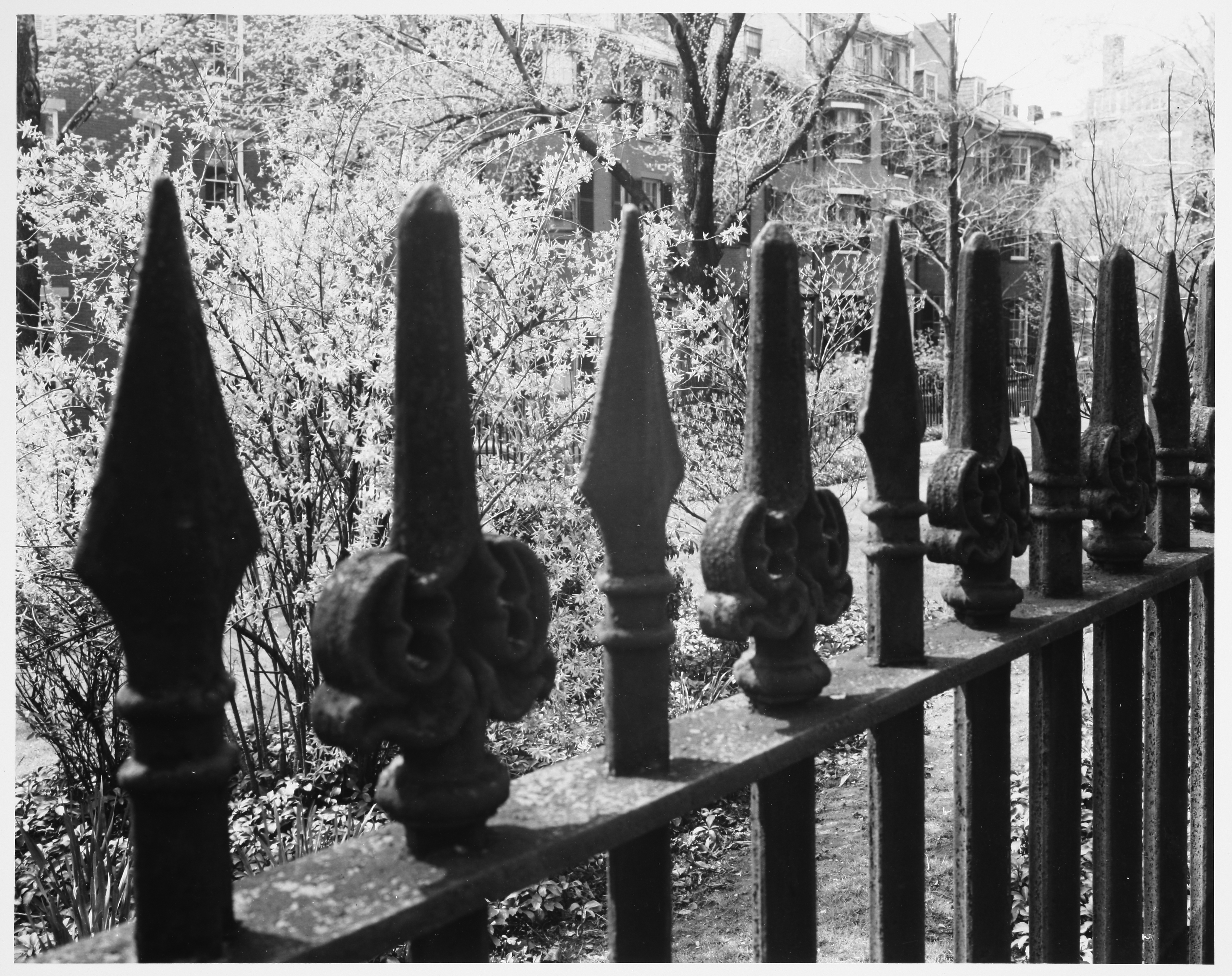 Cemeteries, Fences, Trees, Windows, Monuments, Boston (Mass.), Cast Iron, City and town life, Massachusetts Institute of Technology, Urban areas, Land use, Urban, City planning, Urban planning and environment, Documentary photography, Architectural ironwork, Kepes/Lynch Photograph Collection, Monuments and Statues (Boston, Mass. and Surrounding Areas), Granary Burying Ground (Boston, Mass.)