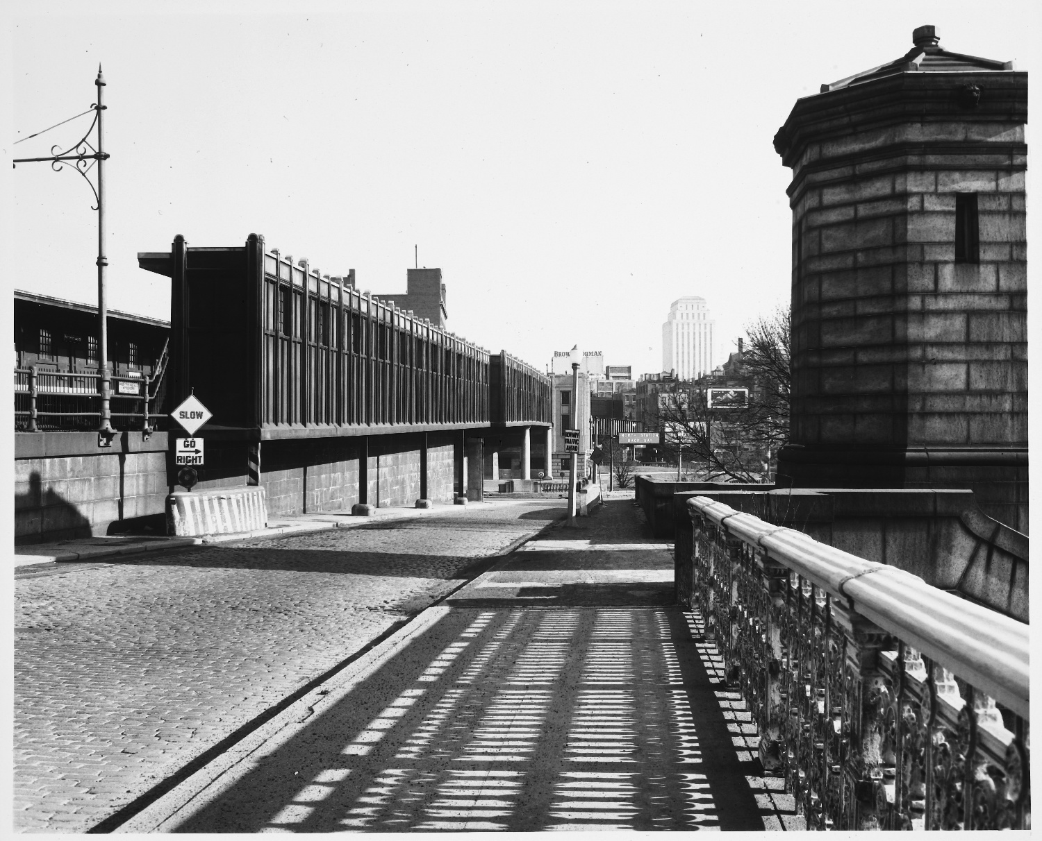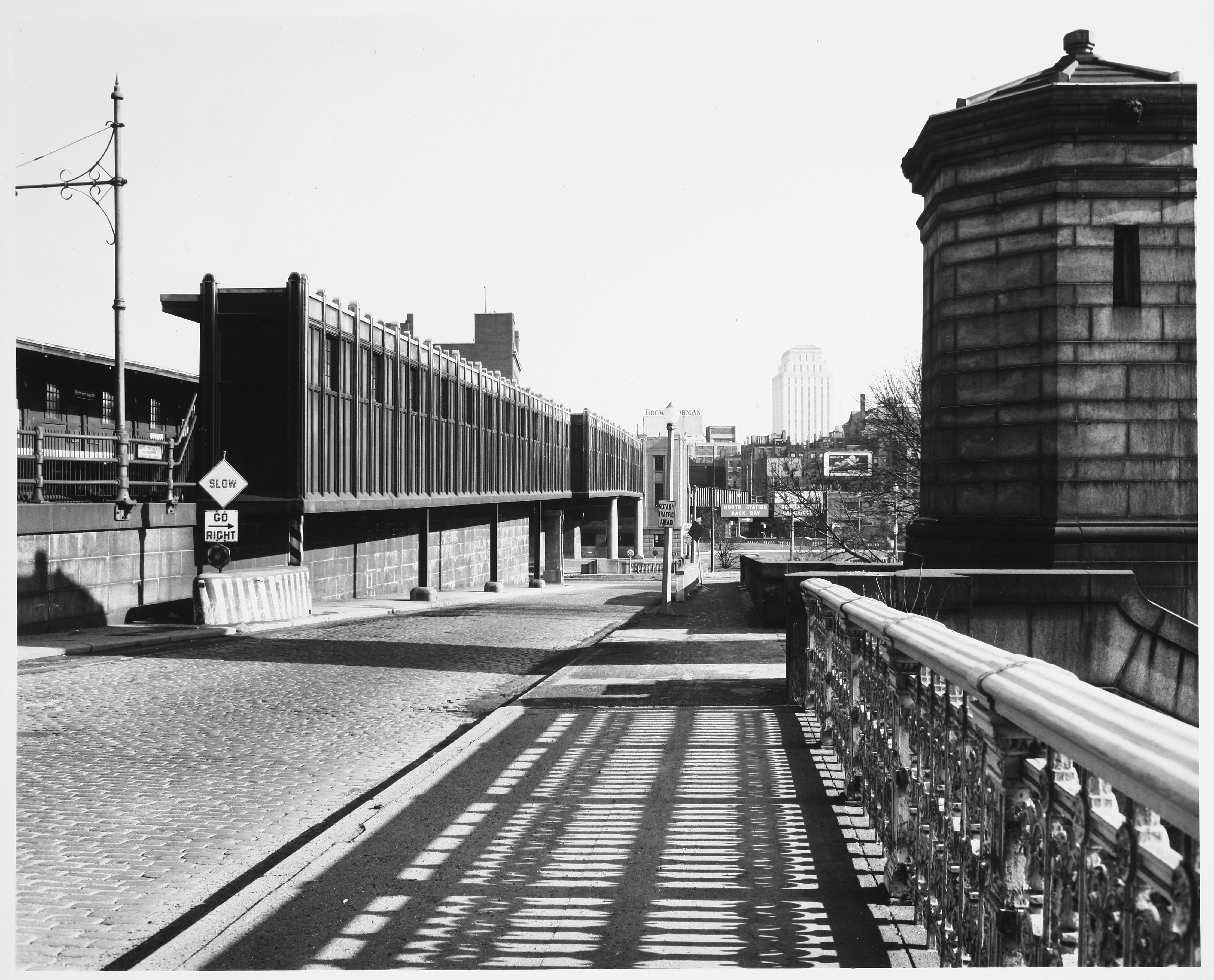 Bridges, Towers, Boston (Mass.), City and town life, Railroad bridges, Traffic signals, Massachusetts Institute of Technology, Streetscapes, Urban areas, Land use, Urban, City planning, Urban planning and environment, Documentary photography, Longfellow Bridge (Boston and Cambridge, Mass.), Sidewalks, Grid Series, Kepes/Lynch Photograph Collection