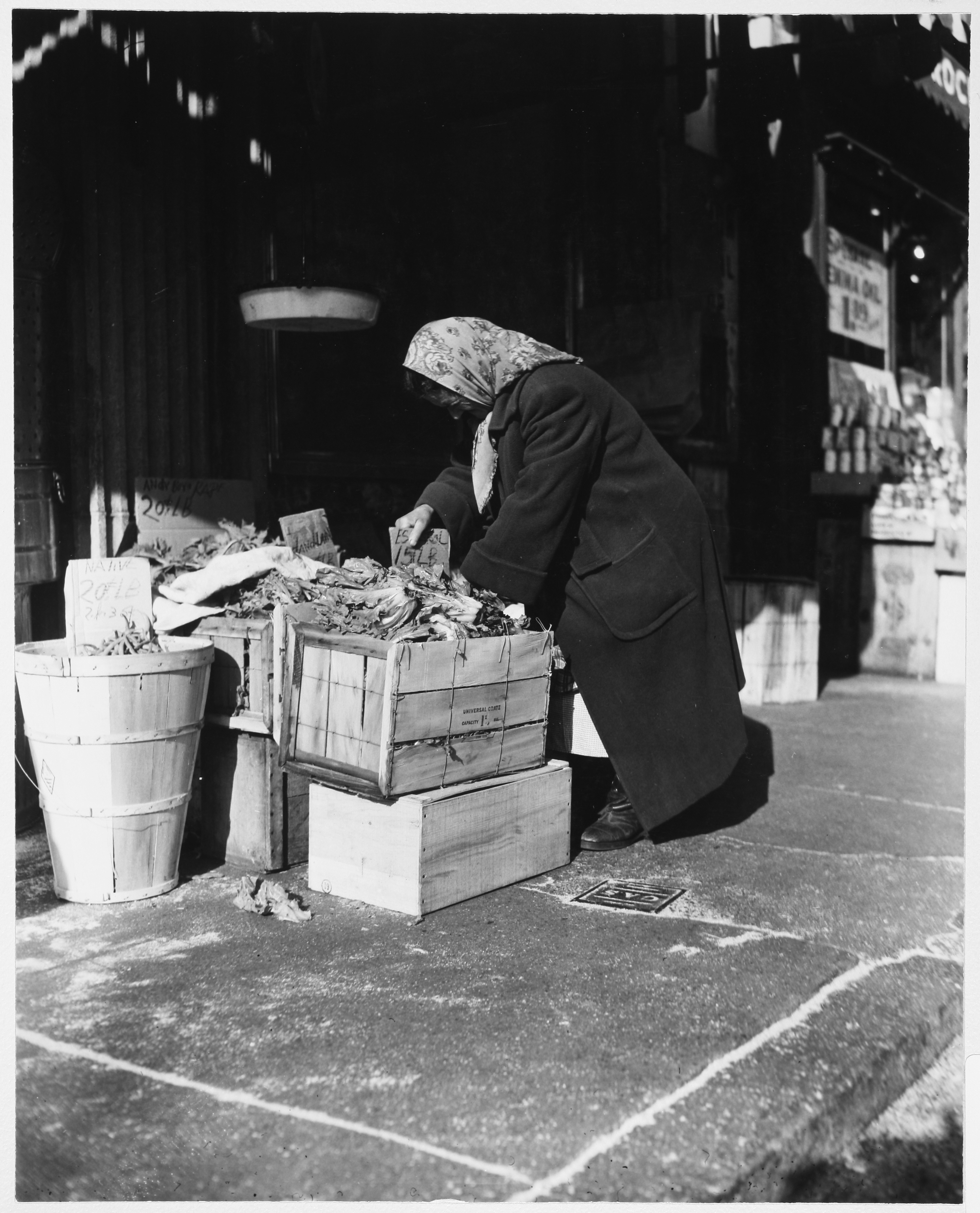 Selling, Street vendors, Vegetables, Boston (Mass.), City and town life, Massachusetts Institute of Technology, Urban areas, Land use, Urban, City planning, Urban planning and environment, Documentary photography, North End (Boston, Mass.), People in Contact with their Environment, Kepes/Lynch Photograph Collection
