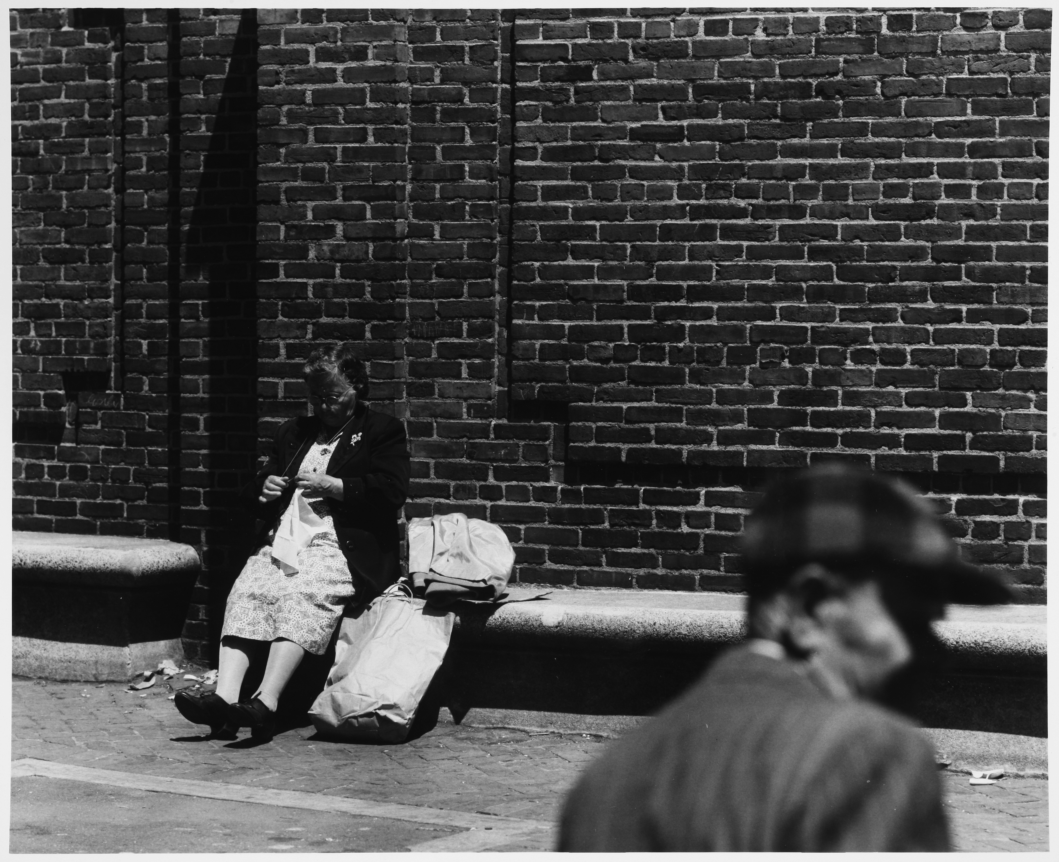 Women, Boston (Mass.), City and town life, Massachusetts Institute of Technology, Pedestrians, Urban areas, Land use, Urban, City planning, Urban planning and environment, Documentary photography, North End (Boston, Mass.), Paul Revere Mall, North End (Boston, MA), People in Contact with their Environment, Kepes/Lynch Photograph Collection, Pedestrian malls