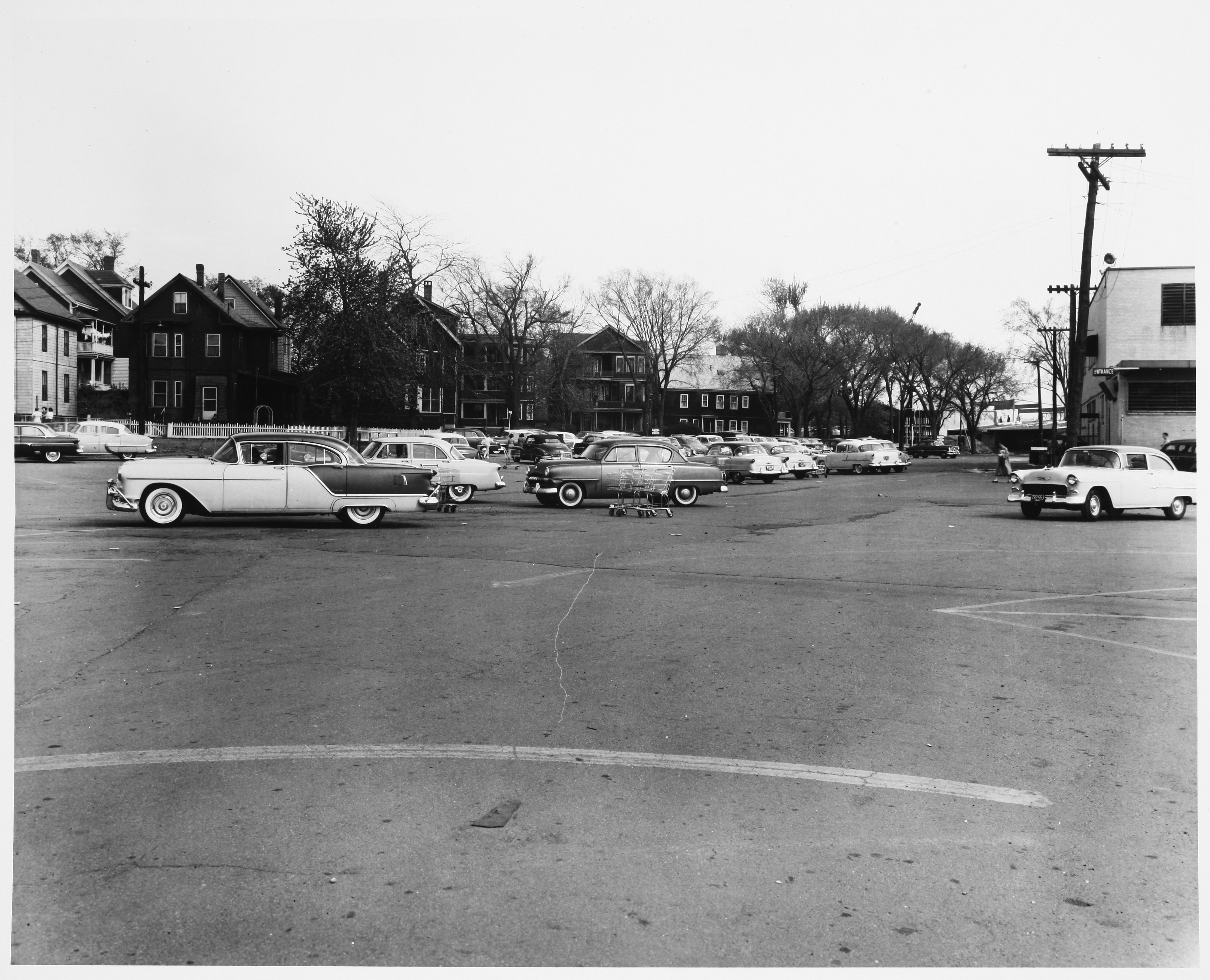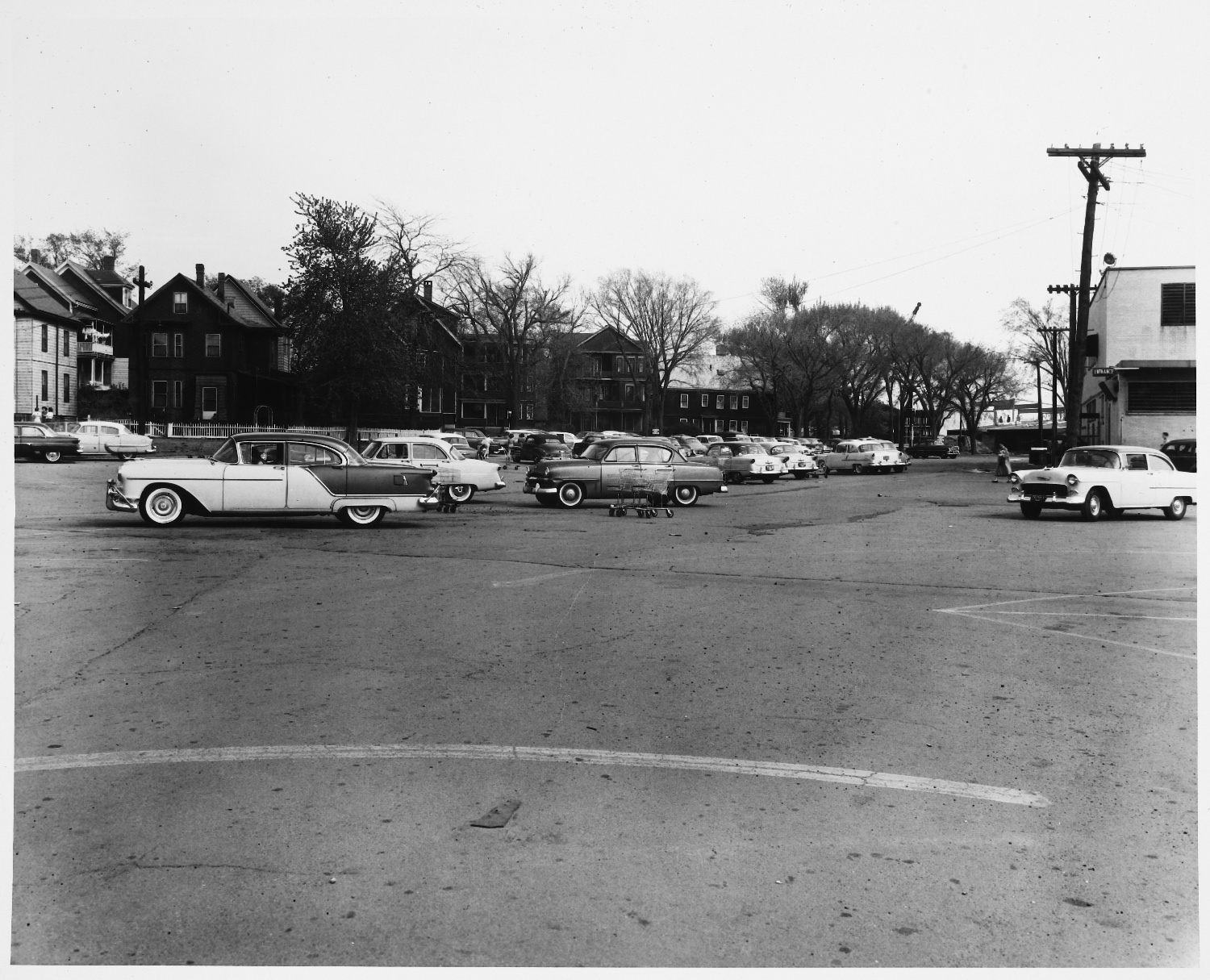 Automobiles, Supermarkets, City and town life, Parking lots, Cambridge (Mass.), Massachusetts Institute of Technology, Urban areas, Land use, Urban, City planning, Urban planning and environment, Documentary photography, Kepes/Lynch Photograph Collection, Stop & Shop Companies, Parking areas