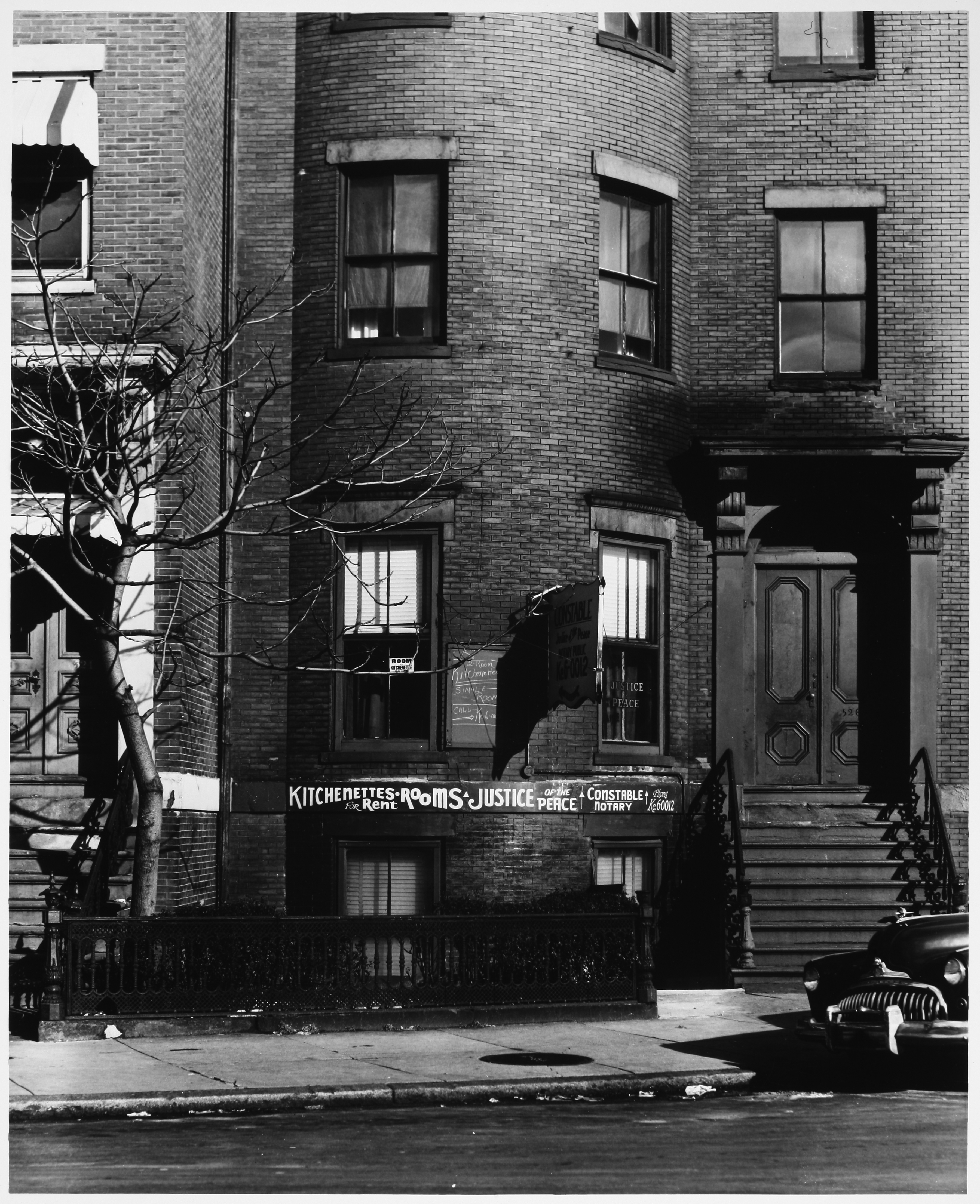 Stairs, Boston (Mass.), City and town life, Masonry, Massachusetts Institute of Technology, Urban areas, Land use, Urban, City planning, Urban planning and environment, Documentary photography, Brownstones, South End (Boston, Mass.), Signs - Day, Kepes/Lynch Photograph Collection, Running bond, Rental housing, Bow windows