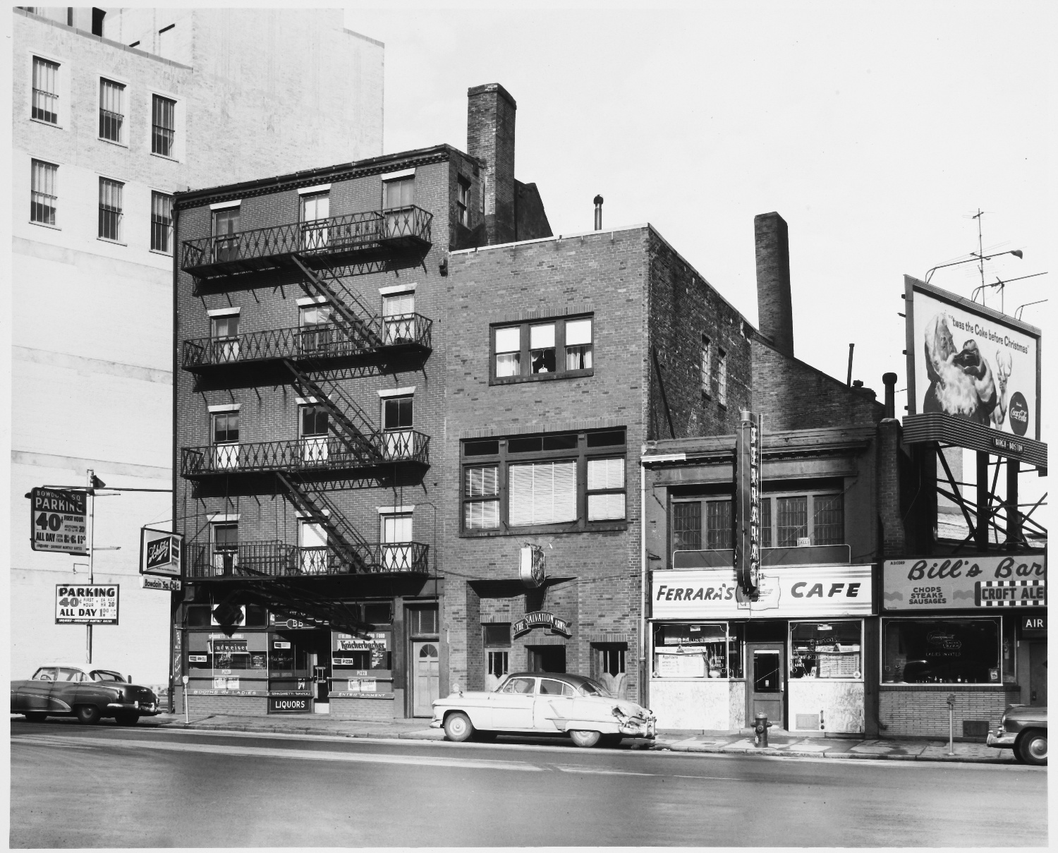 Billboards, Fire escapes, Shop signs, Boston (Mass.), City and town life, Parking lots, Santa Claus, Massachusetts Institute of Technology, Urban areas, Land use, Urban, City planning, Urban planning and environment, Documentary photography, Bars (commercial buildings), Scollay Square, (Boston, MA), Kepes/Lynch Photograph Collection, Coca Cola (Trademark)