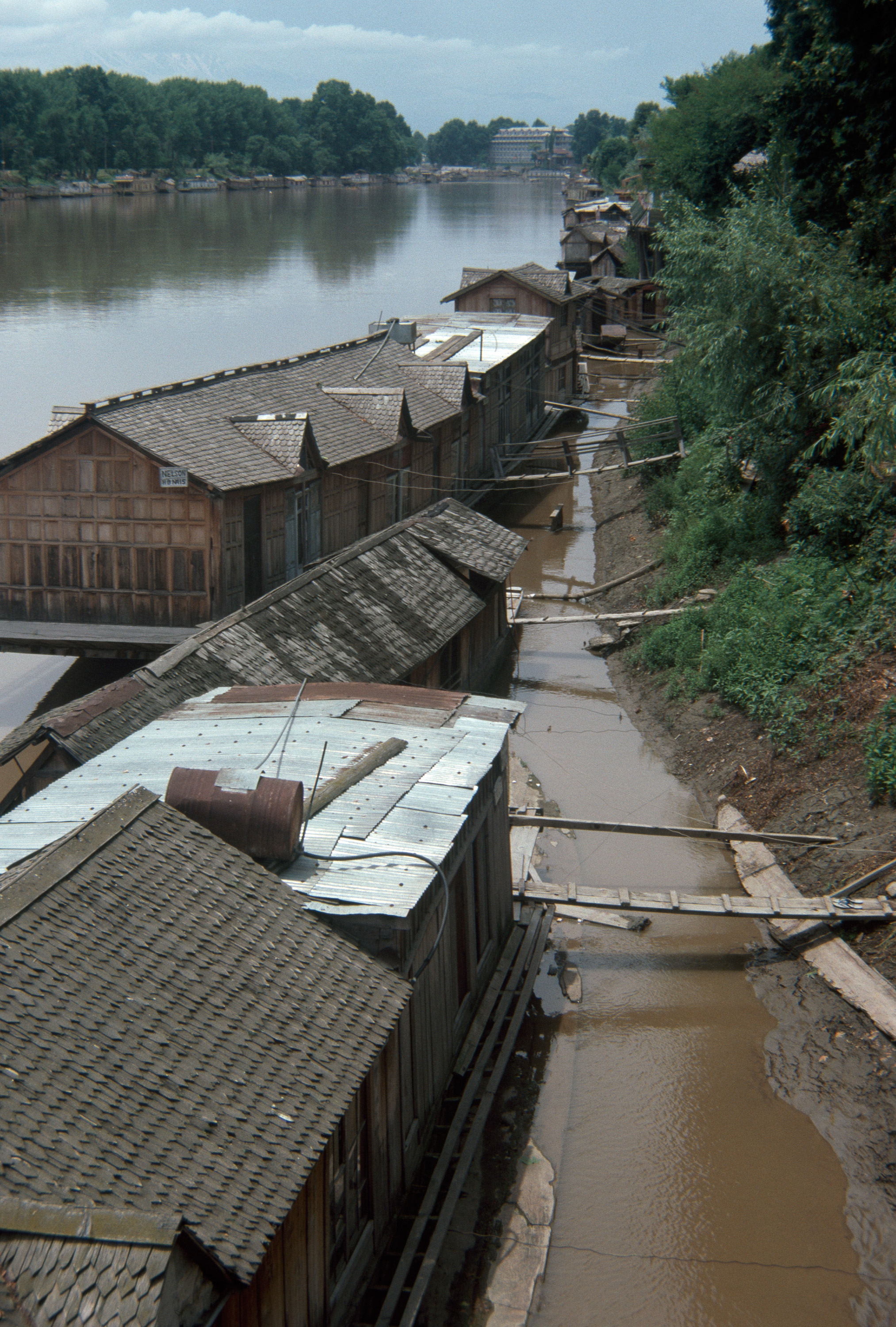 Boats and boating, Canals, Houses, Shelters, Architecture, Islamic --India, Architecture --India, Dwellings, Waterfronts, Dal Lake (India), Woodwork, Jhelum River (India and Pakistan)