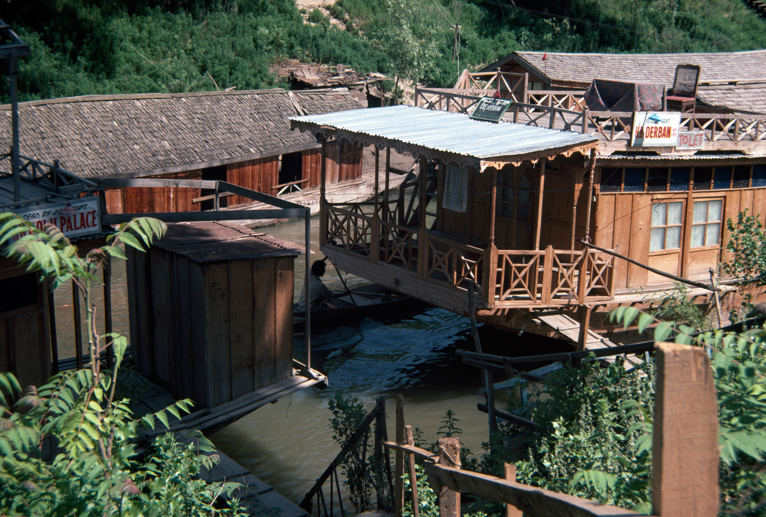 Boats and boating, Canals, Houses, Shelters, Architecture, Islamic --India, Architecture --India, Dwellings, Waterfronts, Dal Lake (India), Woodwork