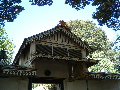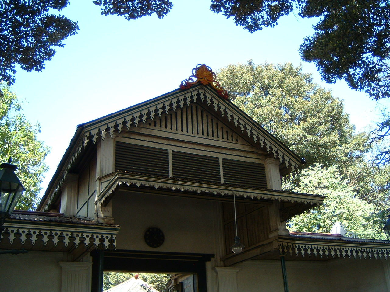 exterior, view of woodwork above entry from treasury to plataran court, 2003