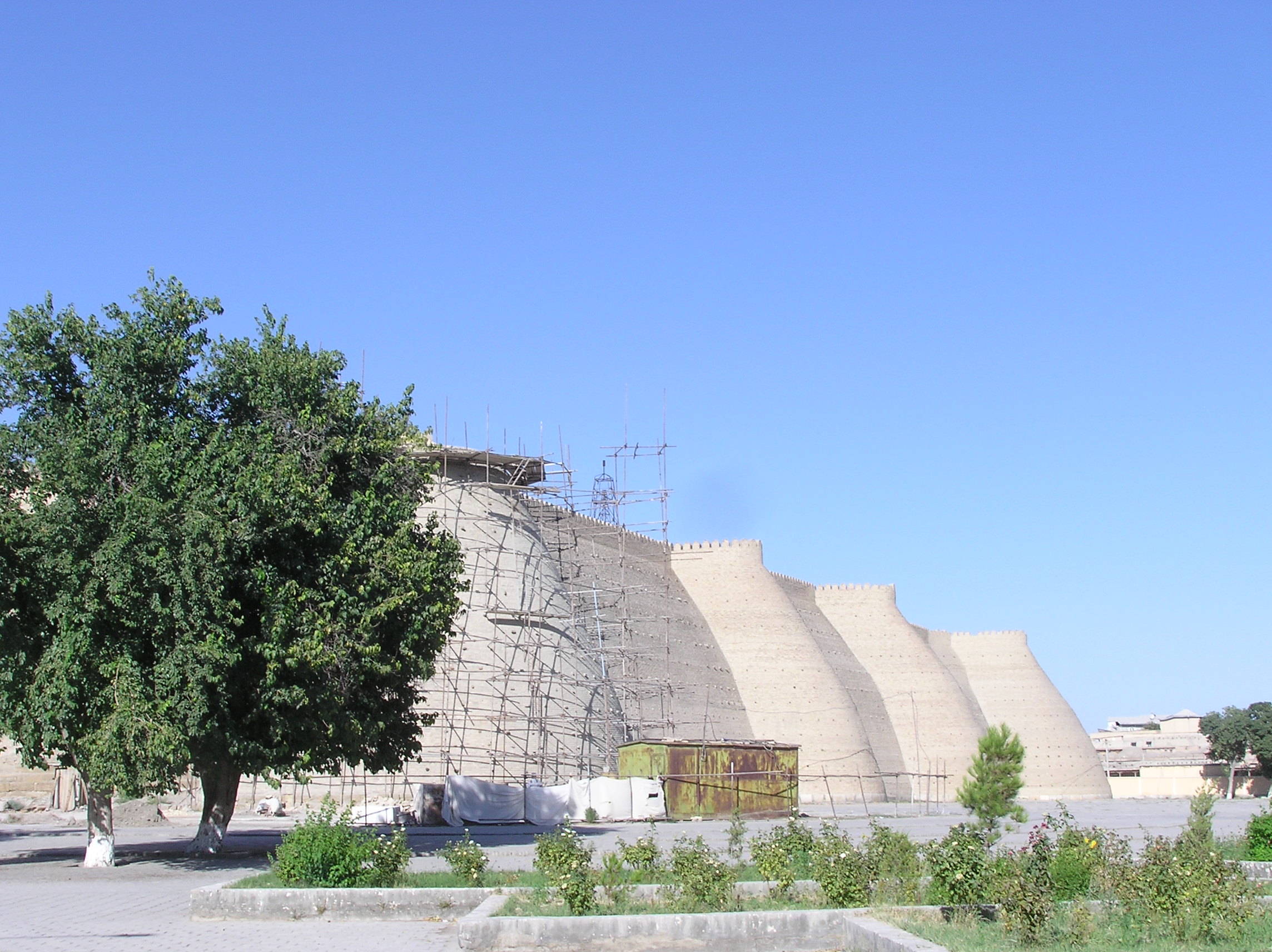 The Ark or Arg of Bukhara is the central citadel within the city's larger mud wall fortifications. It has served a multitude of royal functions over the last twelve centuries ranging from military barracks and palatial quarters to administrative offices. Currently situated as a citadel within the northern section of the old city, it was originally built as an independent fortress and had stood distinct from Bukhara's earliest shahristan, or city center. With its sloping mud walls, this Central Asian citadel is in dire need of repair. As a structure that was continuously used through the centuries, it demonstrates the transformations in military architecture and technology from early Arab rule until the modern Russian state.