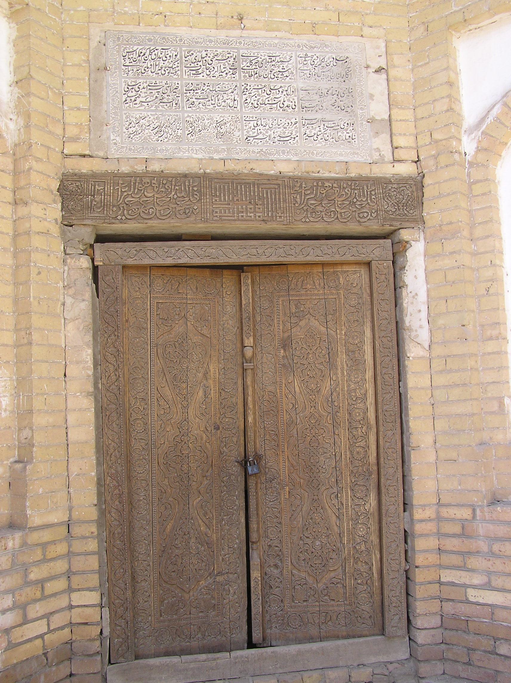 exterior, 19th century building outside walled city, carved wooden door, 2009