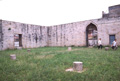 exterior, southwestern corner of ruins of prayer hall, towards gate and street, with bases of columns, 1984