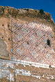 A partially ruined monumental iwan from Aq Saray Palace is all that has survived from the legendary palaces of Timur (reg. 1370–1405) in central Asia. Located in the northeastern part of Shahrisabz (lit. "Green City"), now in Uzbekistan, the construction of Aq Saray (lit. "White Palace") was ordered by Timur in 1380 after a victorious battle with Urgench...The excavations on the site have not been adequate enough to reveal the plan of the complex; it is not clear where the remaining iwan was located in relation to other parts of the palace...The standing iwan is one of the largest built in the Islamic era surviving to date. Although it spans 22 meters and is 30 meters tall, it is estimated that the original vault was as tall as 50 meters. Facing north toward Samarqand, the remaining structure consists of two consecutive rectangular spaces with collapsed vaults. The larger iwan is framed by a portal screen and is flanked by two truncated cylindrical towers. (Historical sources suggest the original height of the towers to have been 60 to 70 meters.) The second narrower iwan, 13 meters in width, was closed by an arched wall.
