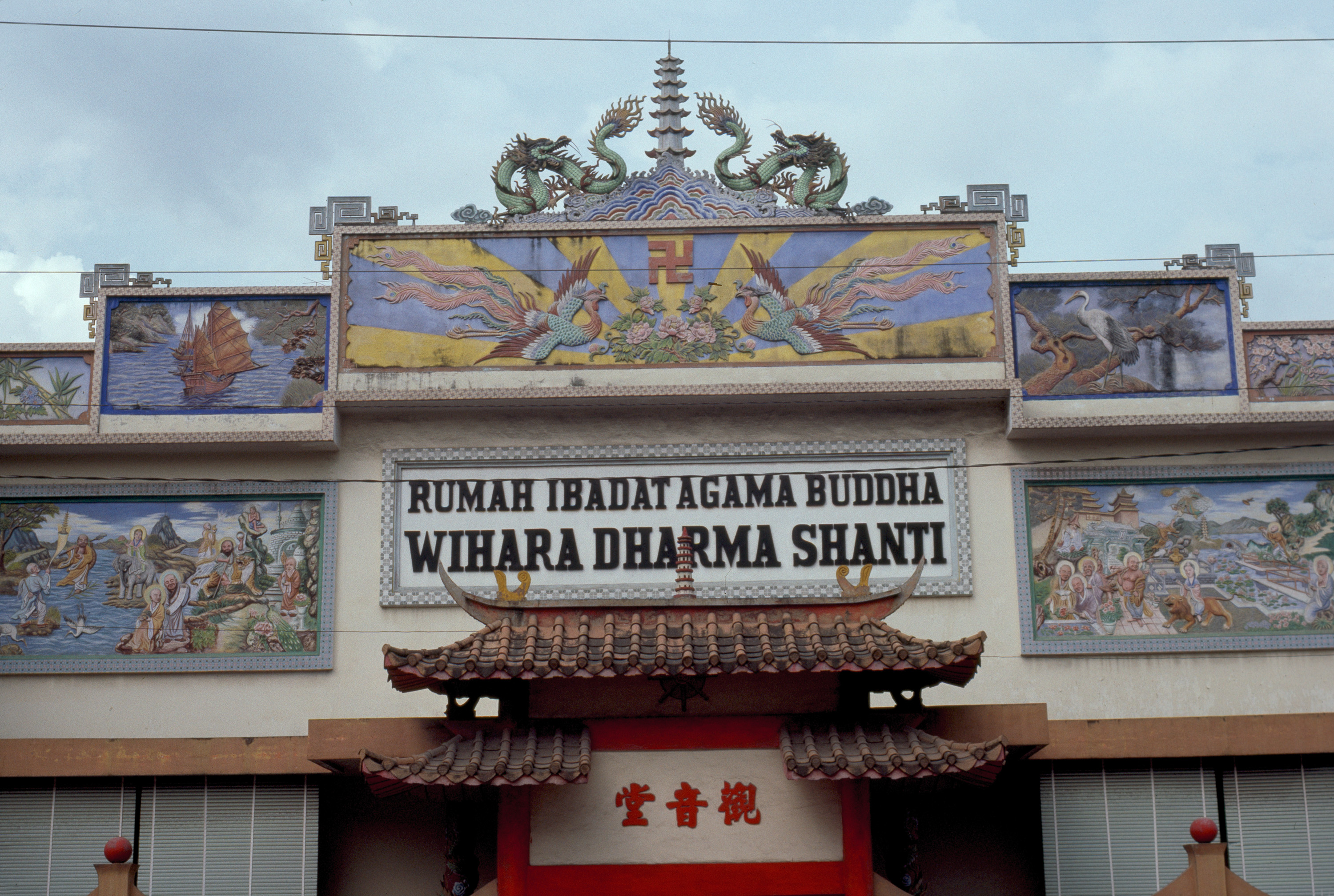 exterior, sign at Buddhist temple, Surakarta (Solo), Central Java, 1984