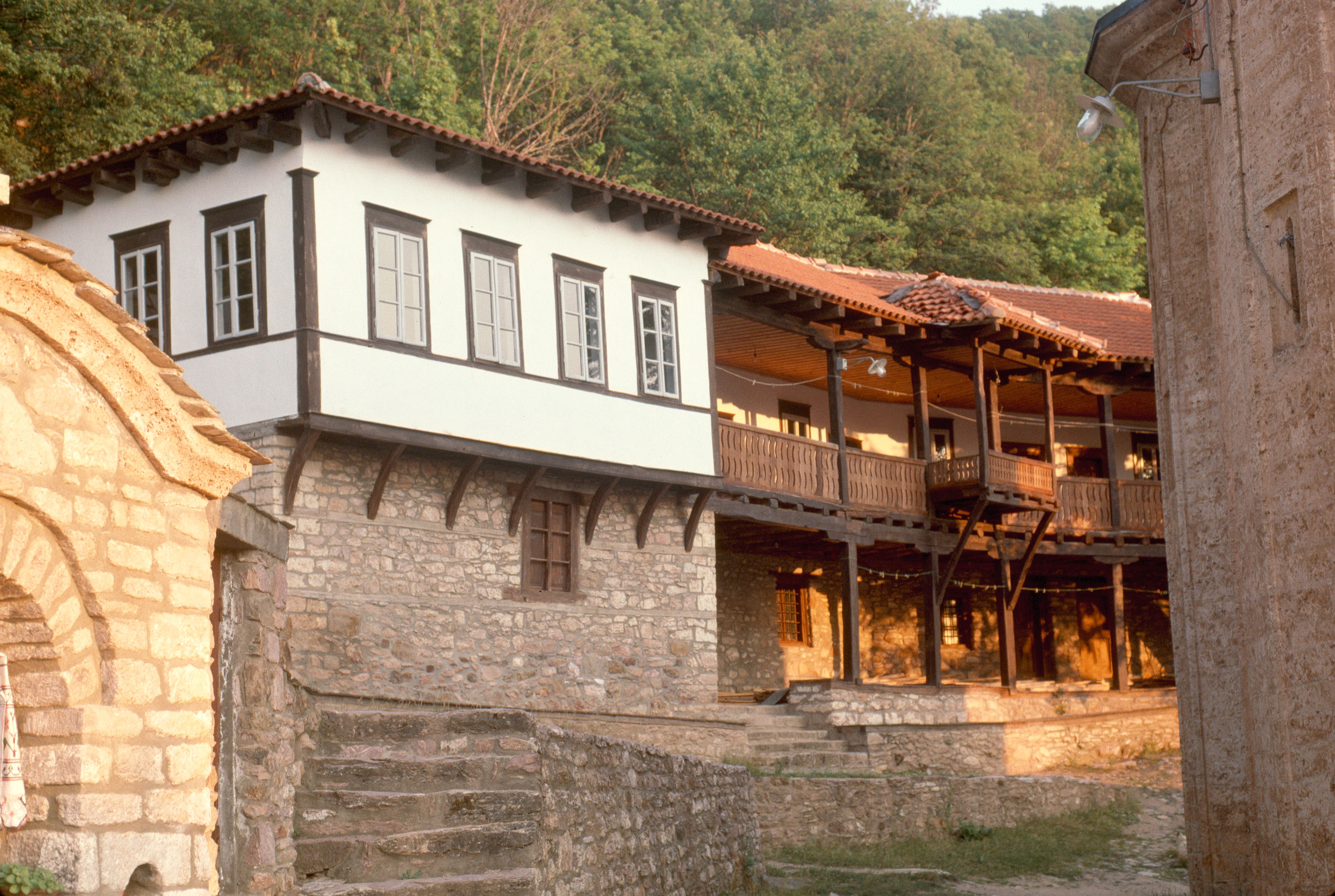 Monasteries, Architecture, Byzantine, Architecture, Medieval, Stonework, Windows, Pilasters, Balconies, Roofing tile, Overhangs, Dormers, Braces (Supporting elements), Wooden-frame buildings