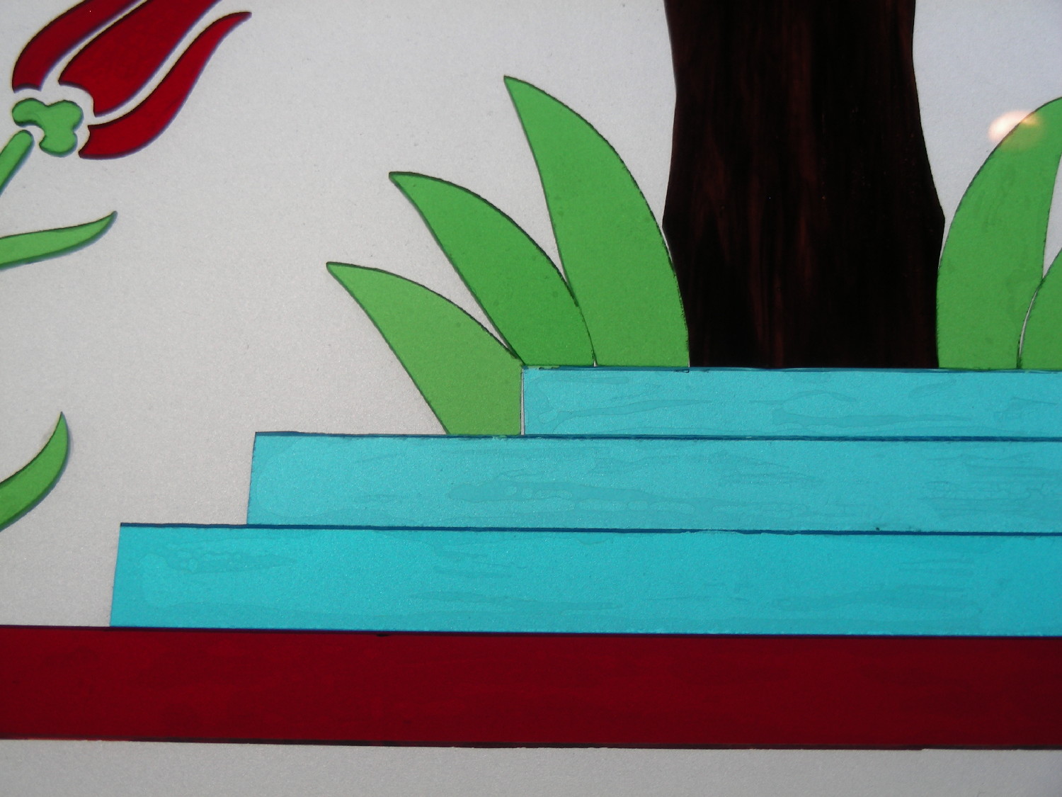 Culver City, CA 90232 interior, detail of painted window in prayer hall with flowering tree design, 2010