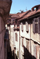 exterior, view along building facades of Old City street, 1990